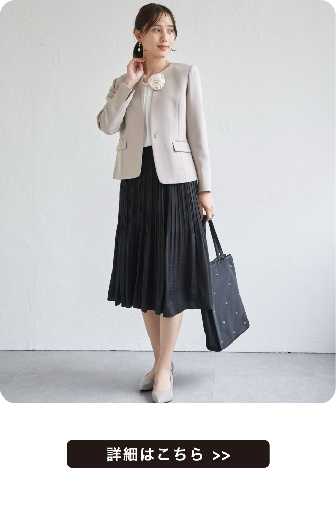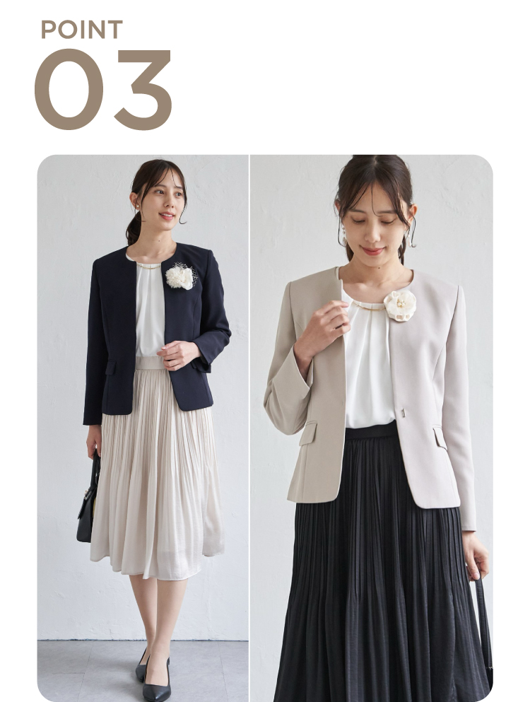 セットアップ以外にもスカート合わせでより上品な仕上がりに。