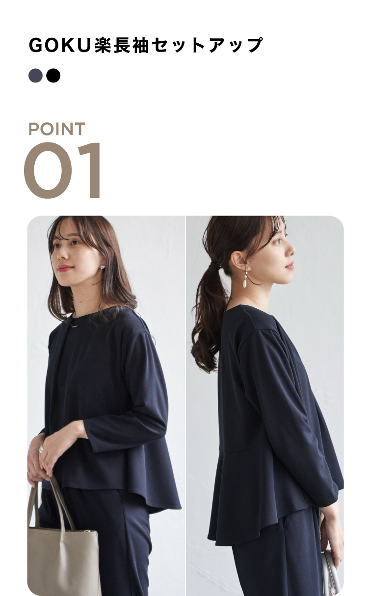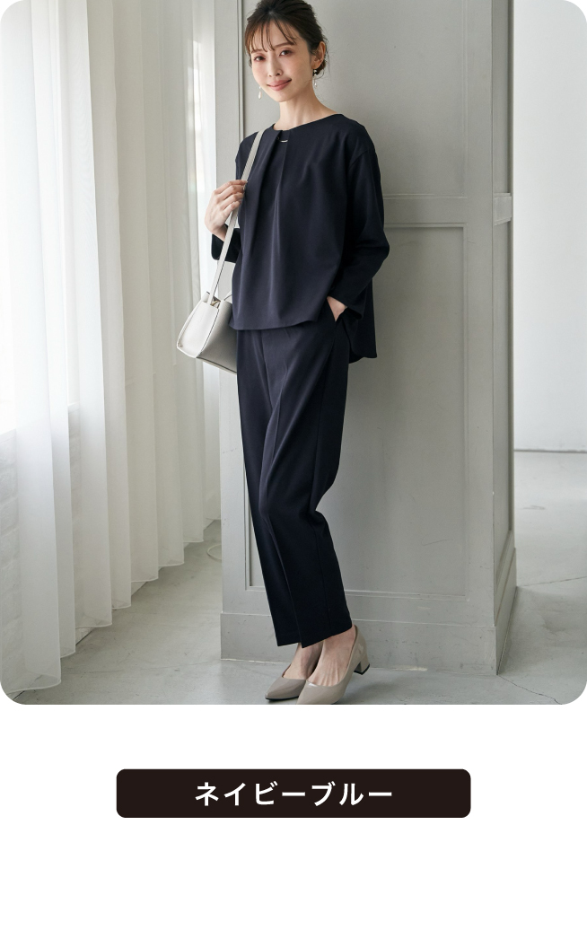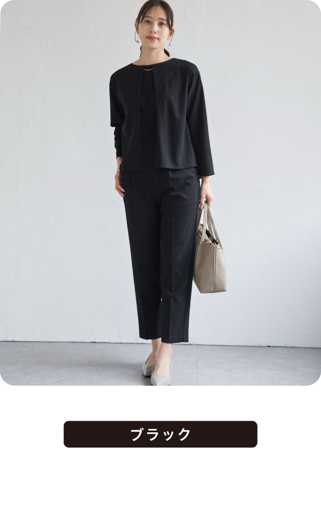 ペプラム切り替えのトップスと、シンプルでベーシックなテーパードパンツが揃ったセットアップ。上下別々でも着回しやすく、コーディネートの幅が広がります。ちょっとしたお呼ばれや学校行事など、きちんと見せたいシーンにぴったり。ストレッチ性のある素材で、快適な着心地を叶えながら上品な印象を演出します。
