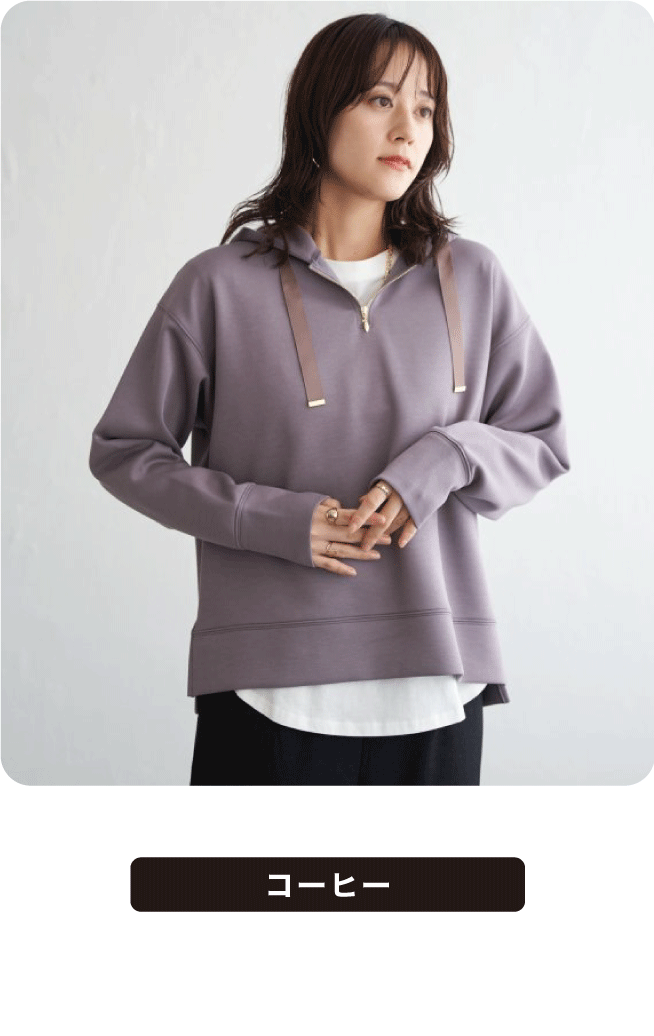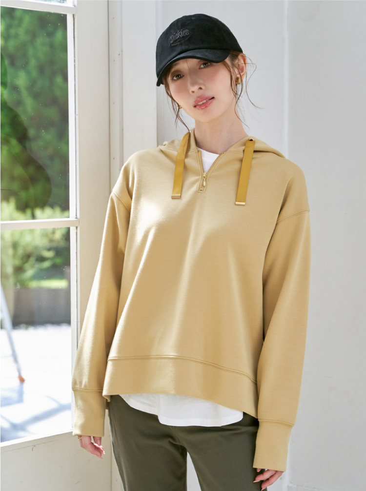 快適な着心地とディテールにこだわったデザイン性を兼ね備えたパーカー。フロントネックにファスナーが付いて、開閉可能デザインにアップデートしました。きれい目カジュアルにぴったりなアイテムです。