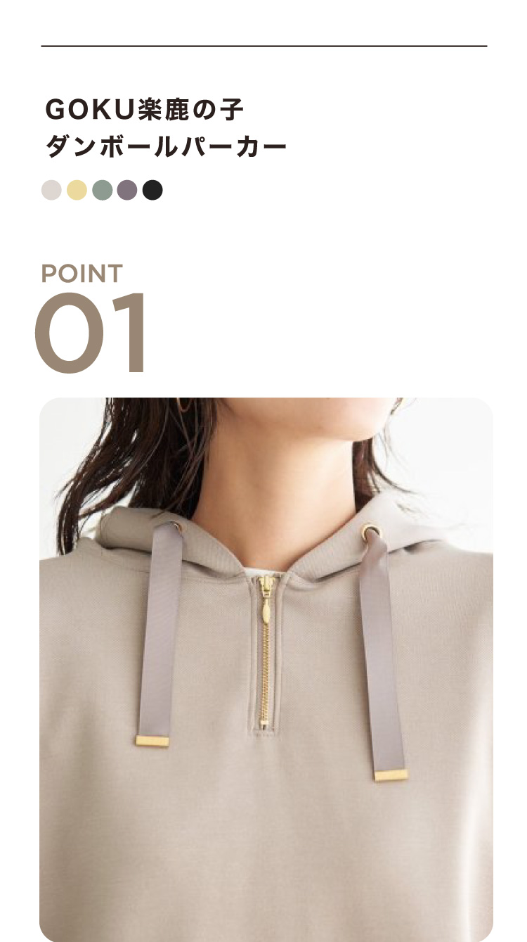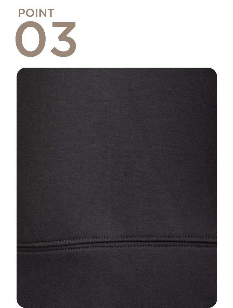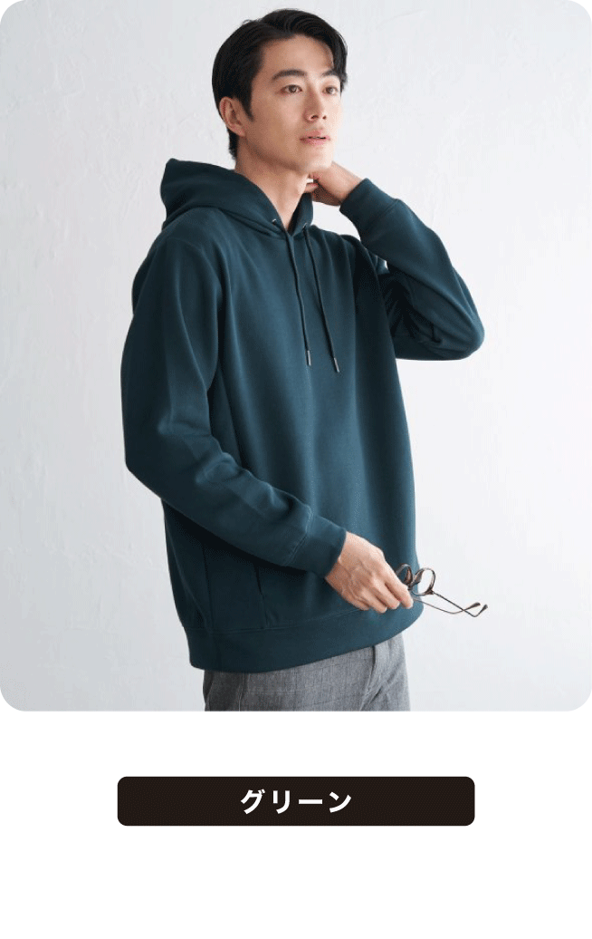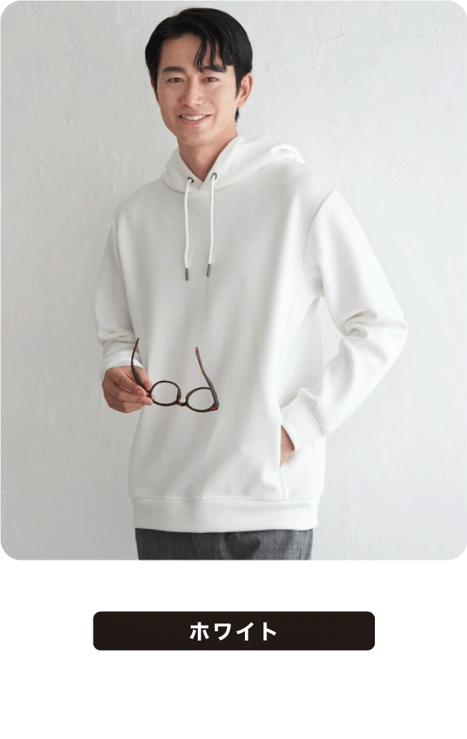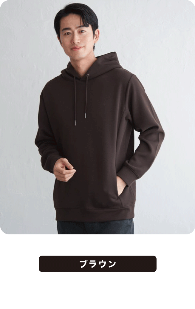 もちっとしたやわらかさが魅力のダンボール素材を使用したパーカ。ストレッチ性、抗菌防臭加工を兼ね備え、機能性にもこだわりました。フードの立ち上がりも美しく、ラフすぎない見た目です。