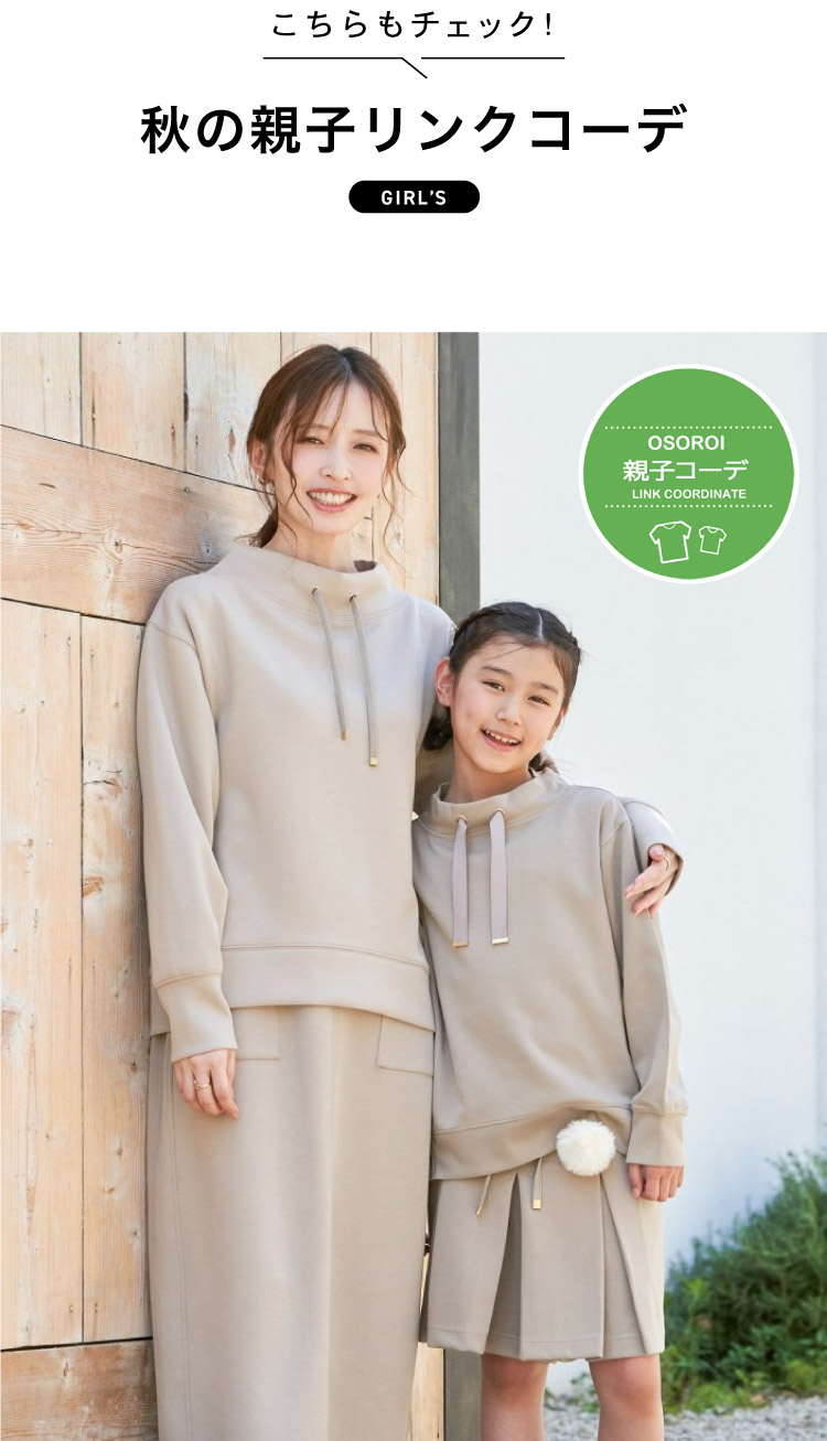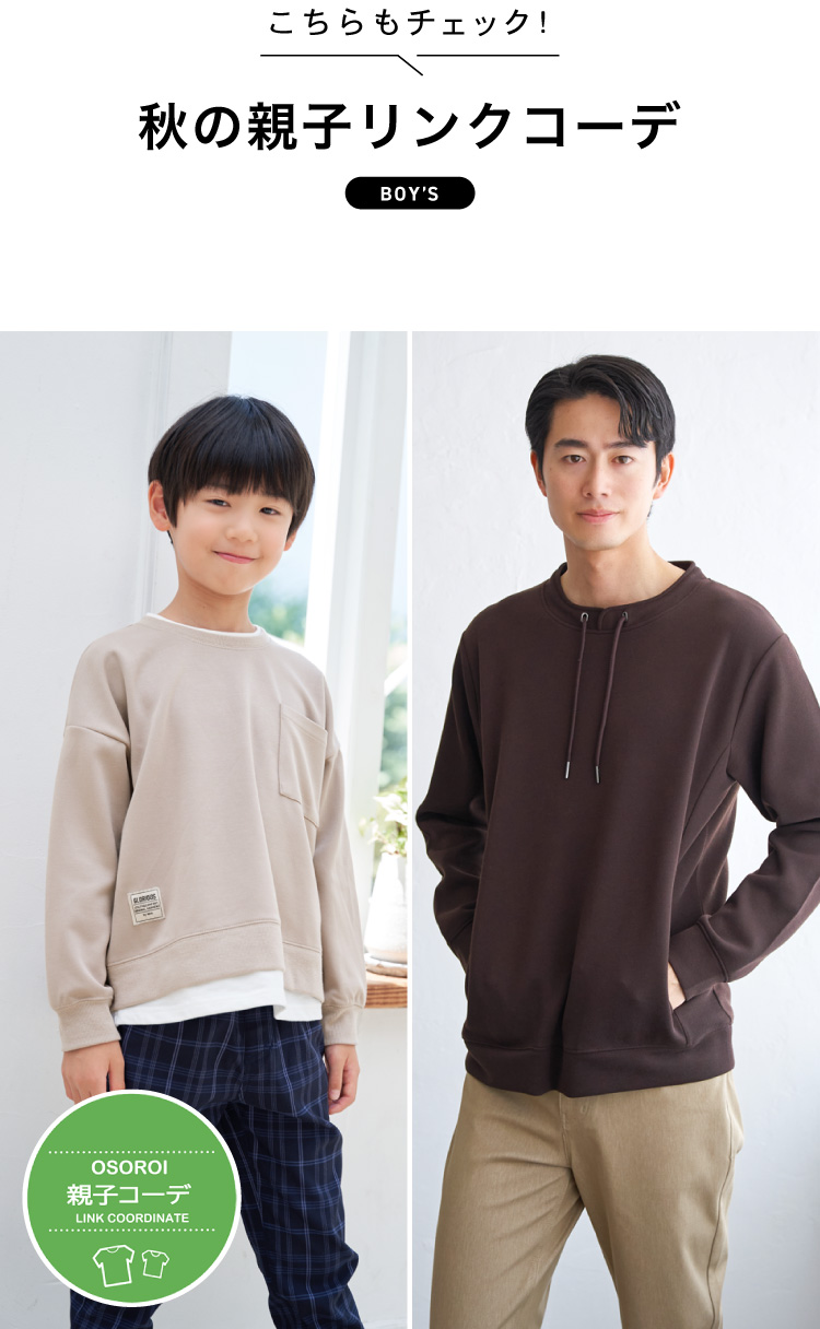 ドライタッチが心地よく動きやすい鹿の子ダンボール素材のアイテムは秋のお出かけ活躍するアイテム。親子でリンクコーデを楽しみたい時は、着るだけでコーディネートが完成するセットアップがおすすめです。