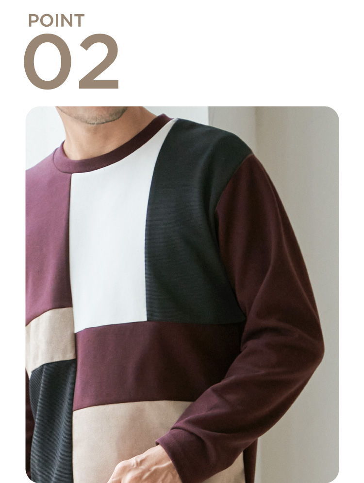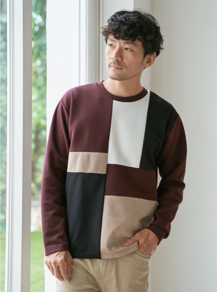 "ikka"で根強い人気となっている、異素材×ブロッキングで切り替えた「ブロックス」シリーズのプルオーバーです。落ち着いた色味とクルーネックのベーシックなシルエットで、デイリーにも休日コーデにも活躍します。