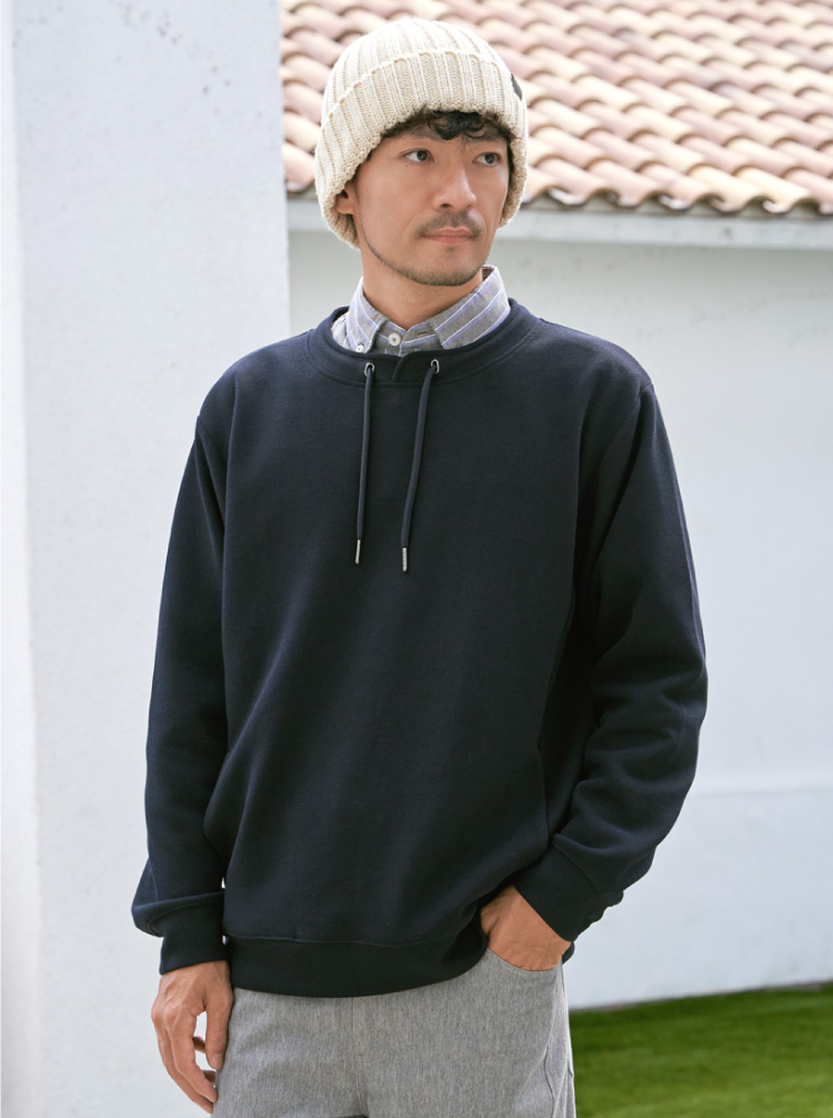 フェイクレイヤードデザインが重ね着風の立体感を演出し、一枚でスタイリングが決まります。