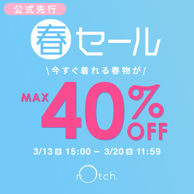 春のおしゃれをお得に楽しめる春セール開催中。 今すぐ着られる春服を、最大40%OFFでお得にご用意しました。 お気に入りの一着を見つけて春コーデをアップデート。