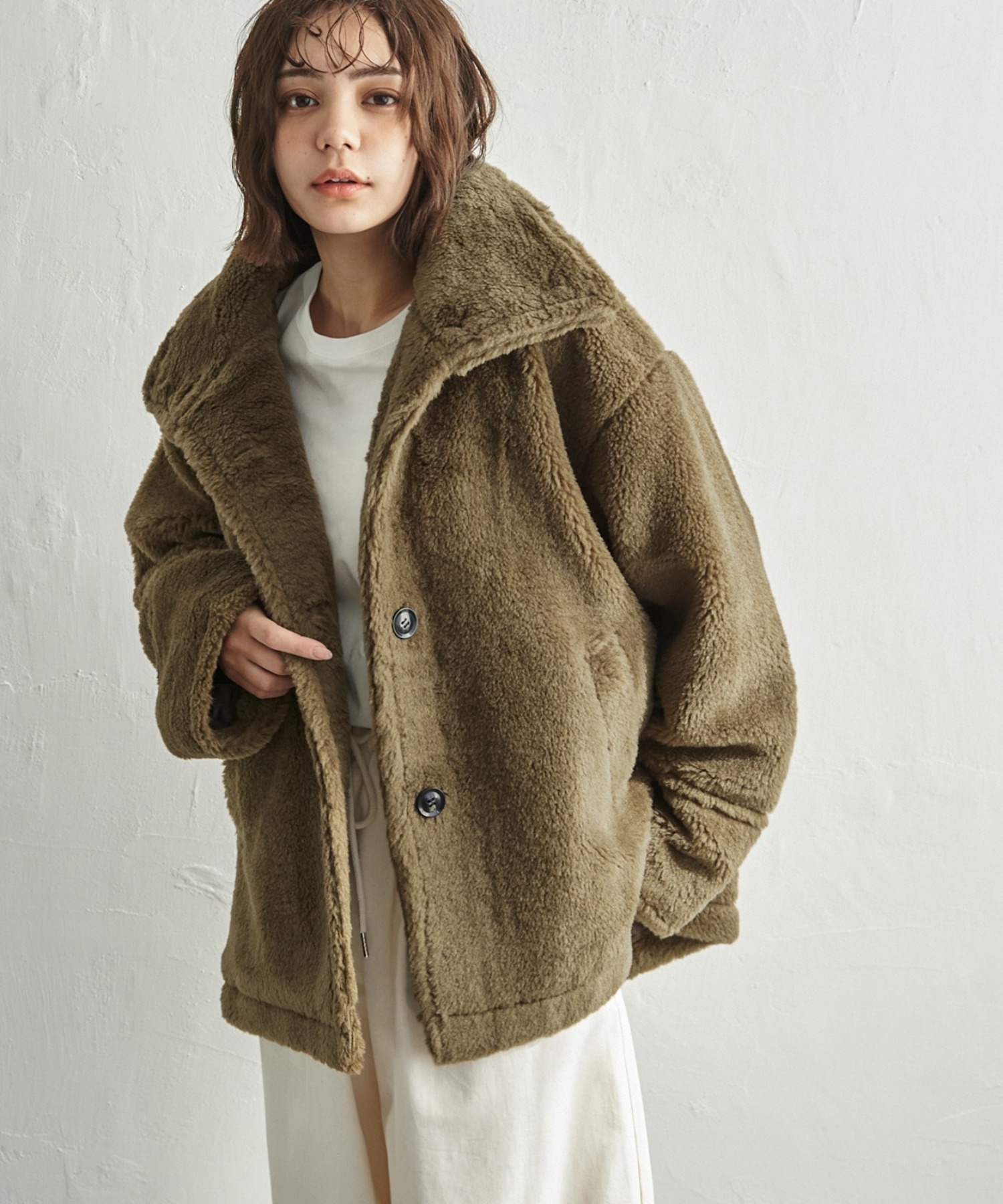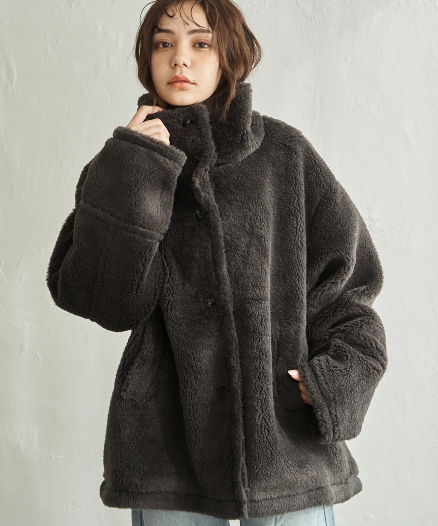 ボリュームのあるボア素材で肌ざわりもよく暖かく軽い【notch. by KASUMI】 ボアスタンドジャケットが