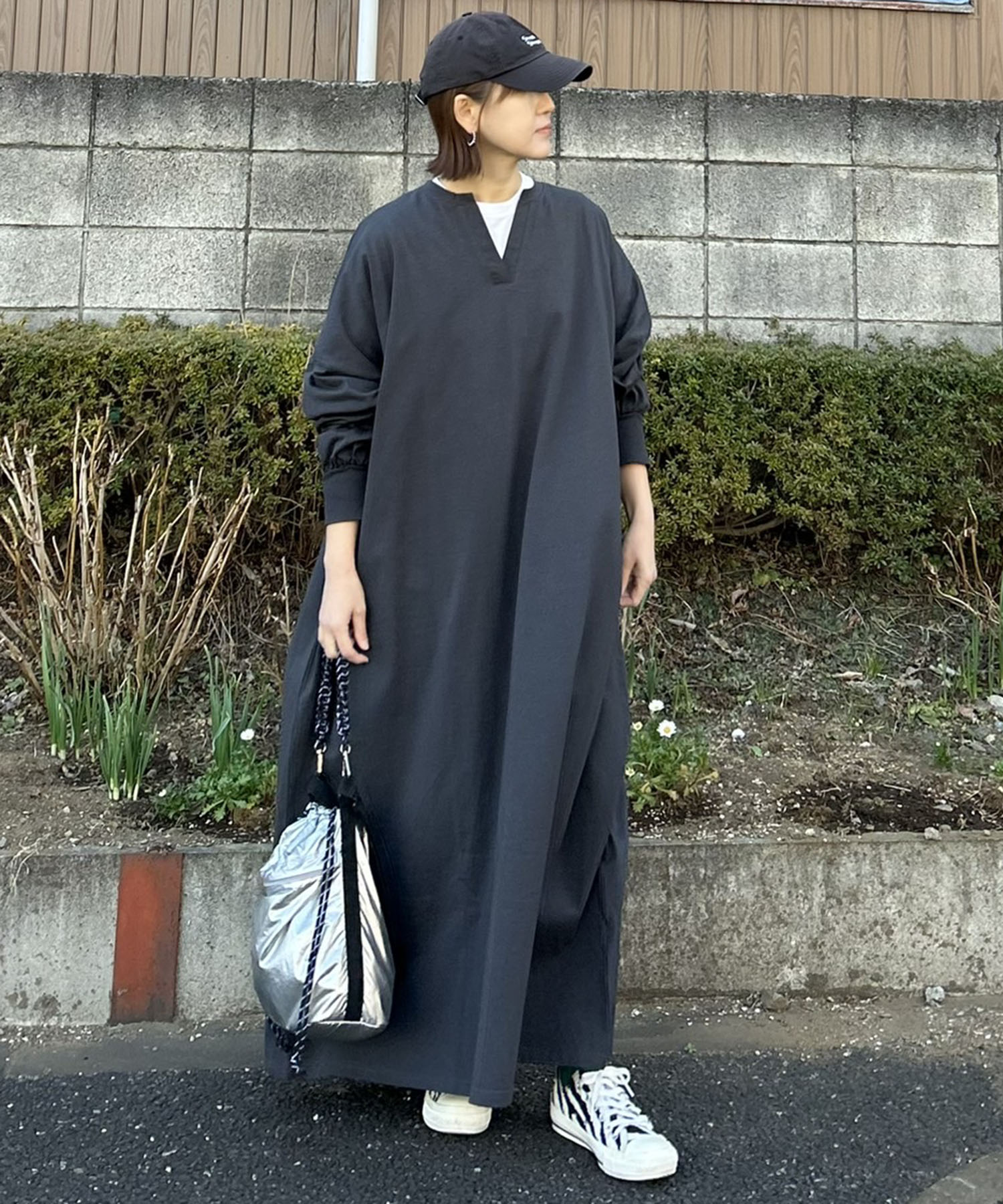 リラックス感と抜け感を絶妙に両立した、ゆったりとしたシルエットながらも、首元のキーネックがすっきりと見せてくれるデザイン。