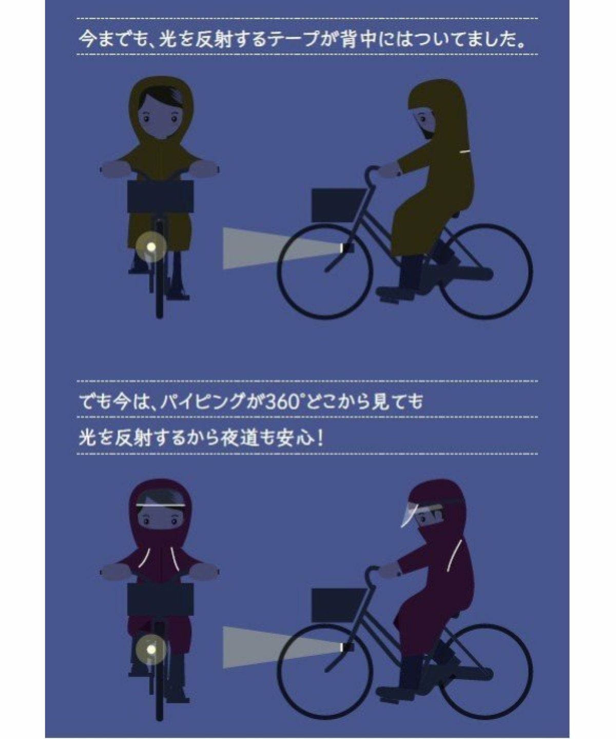 他の画像を見る 雨の日の自転車活動の不満点、不都合を業務用レインウエアで培った防水の技術で改善した自転車専用レインコート 雨先案内人サイクルレインコート ¥ 11,000 税込 カートに入れる お気に入りに登録する