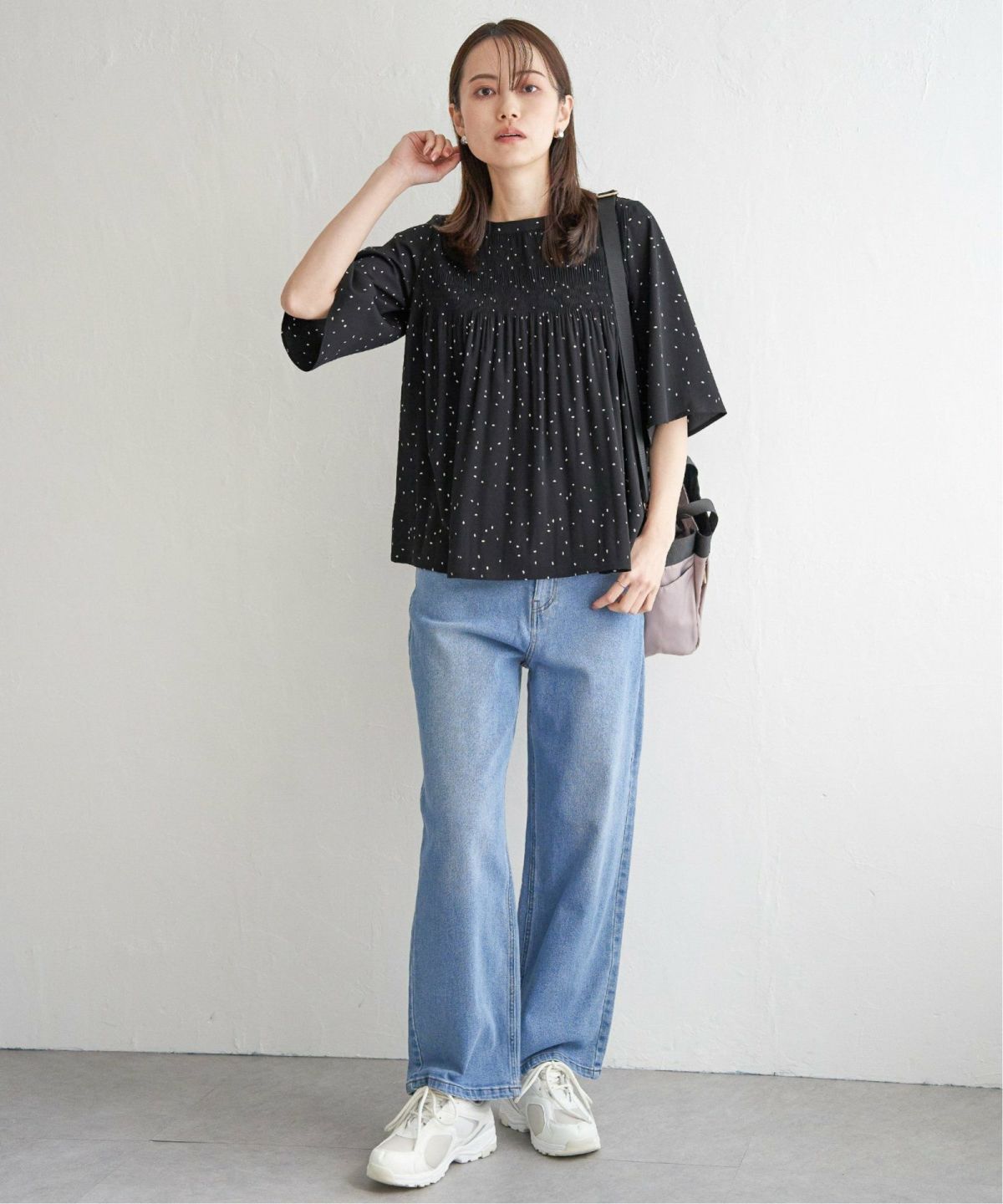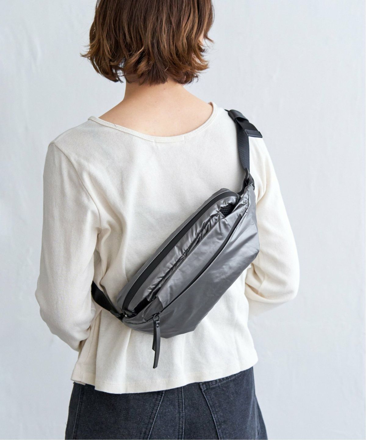 シャイニーな生地感がコーデを引き締める! greteグロッシーボディバッグ