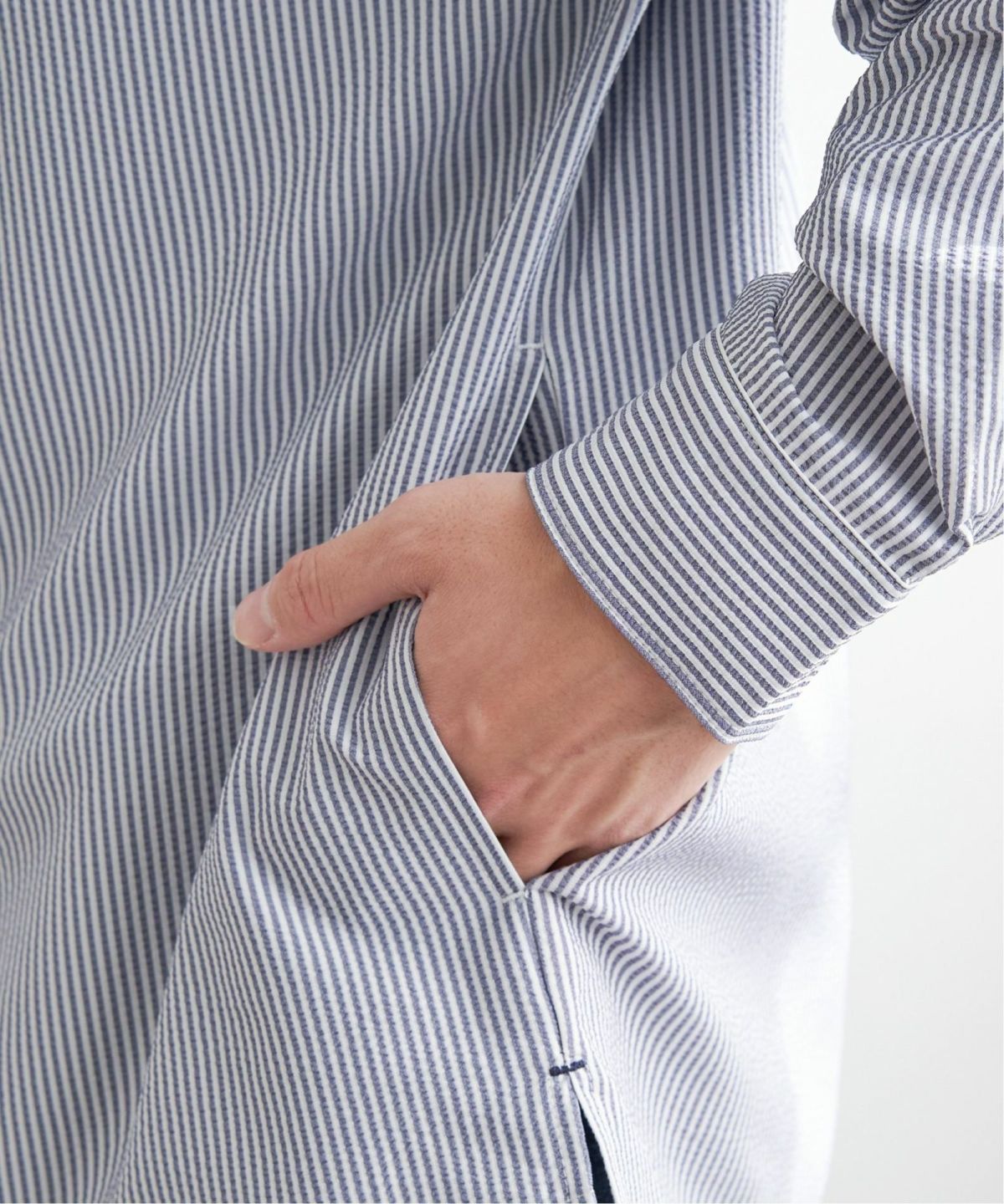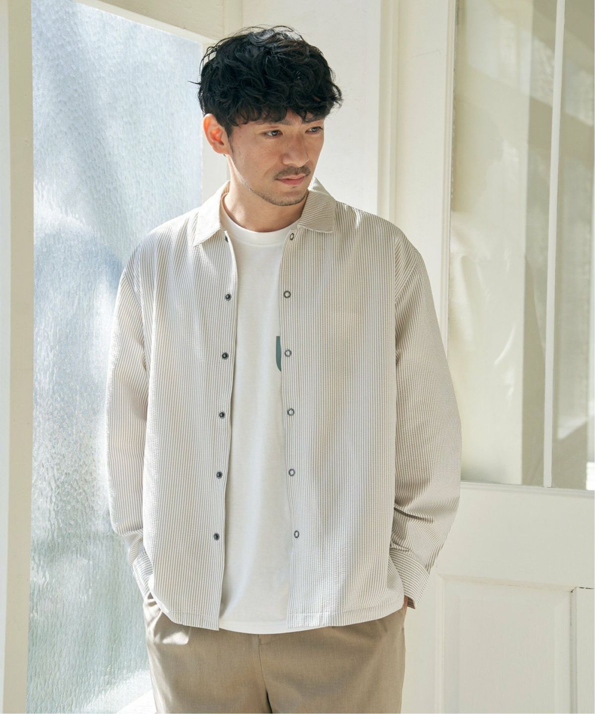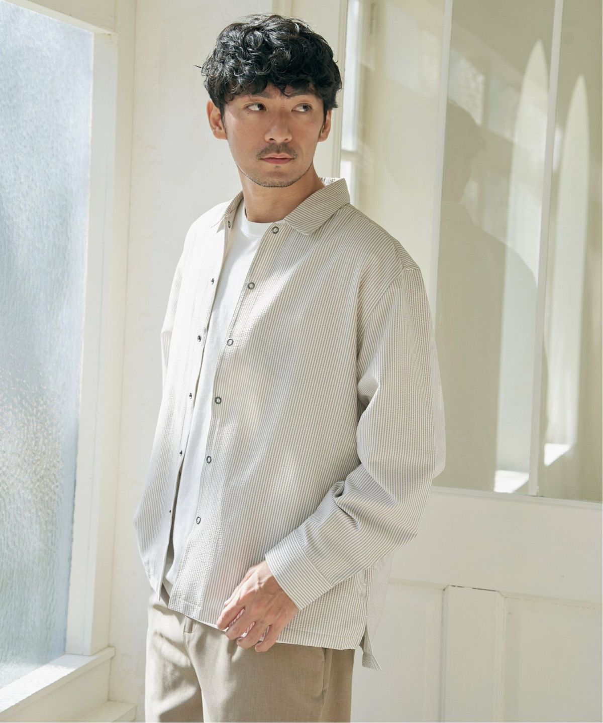 シャツの軽快さとアウターの存在感を両立 イージーケアサッカースナップシャウター