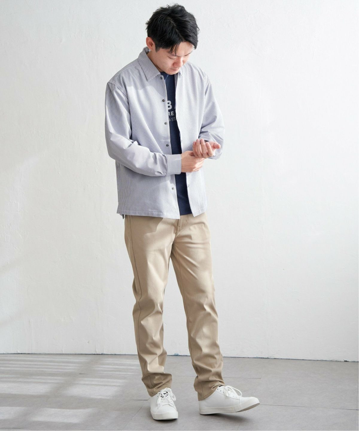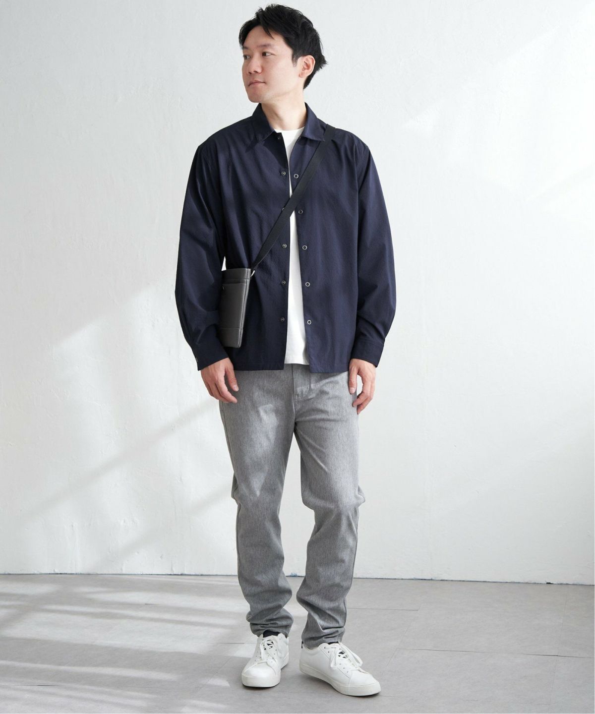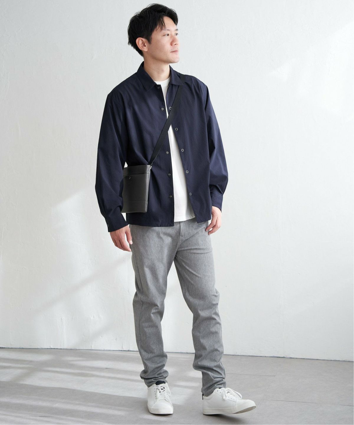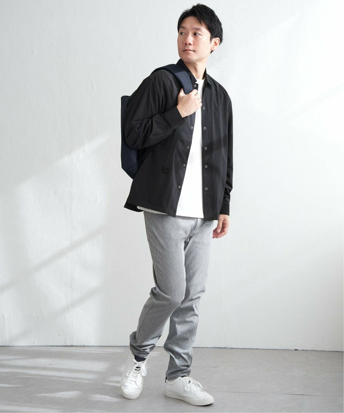 シャツの軽快さとアウターの存在感を両立 イージーケアサッカースナップシャウター
