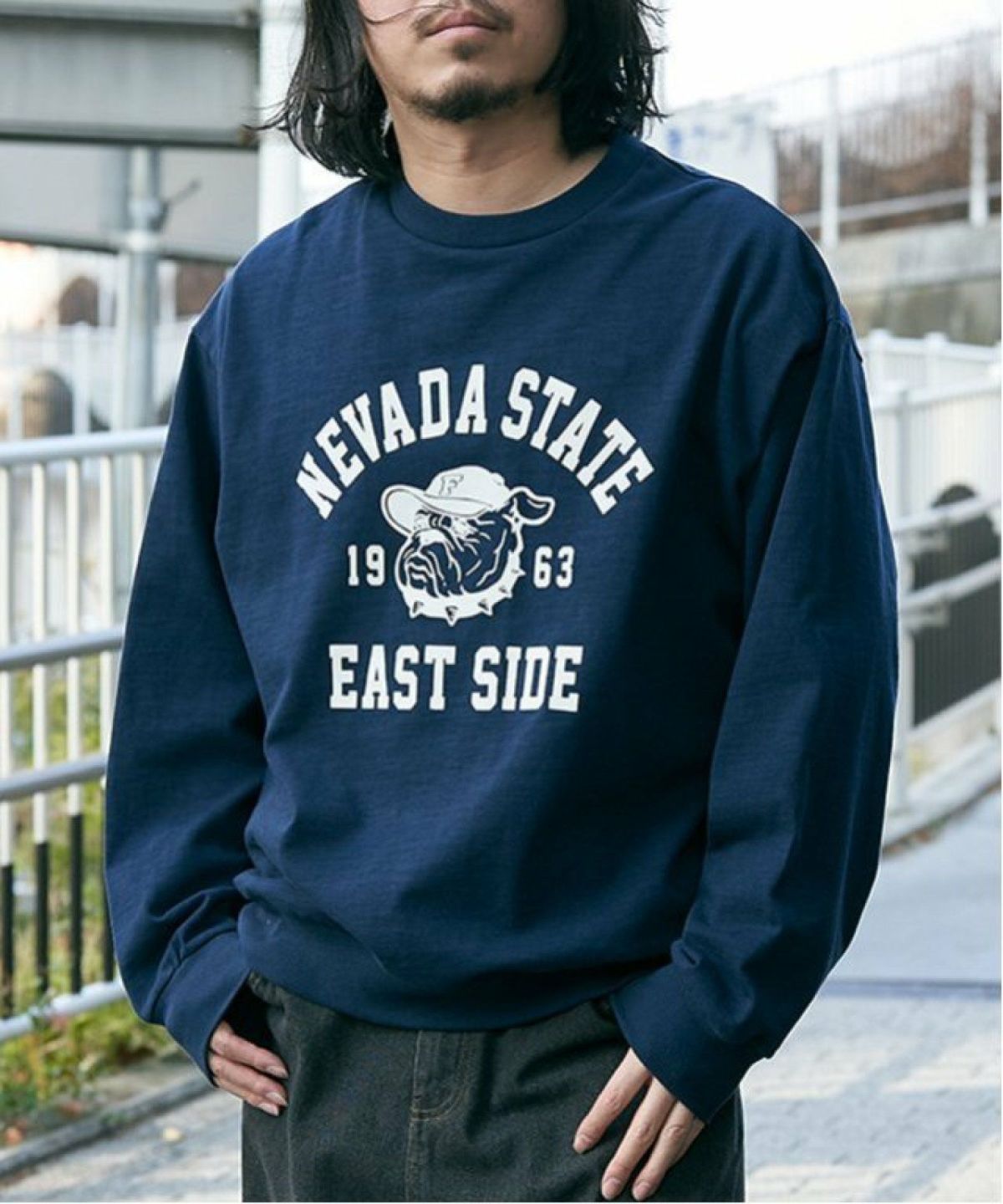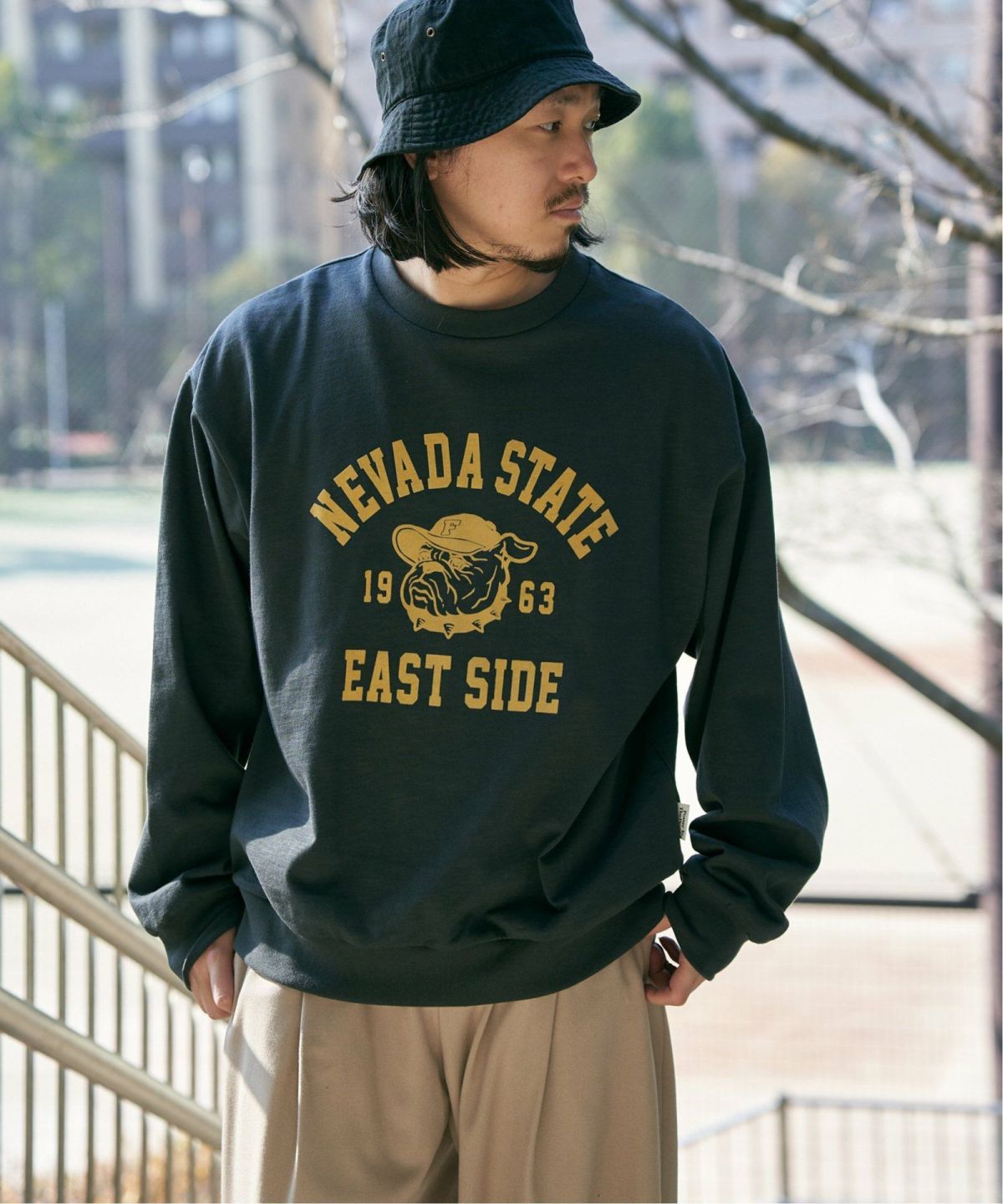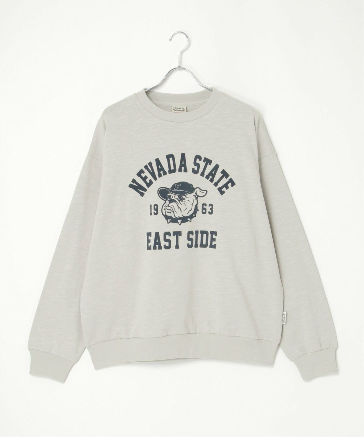 カレッジ風なブルドックプリント! スラブブルプリントトレーナー