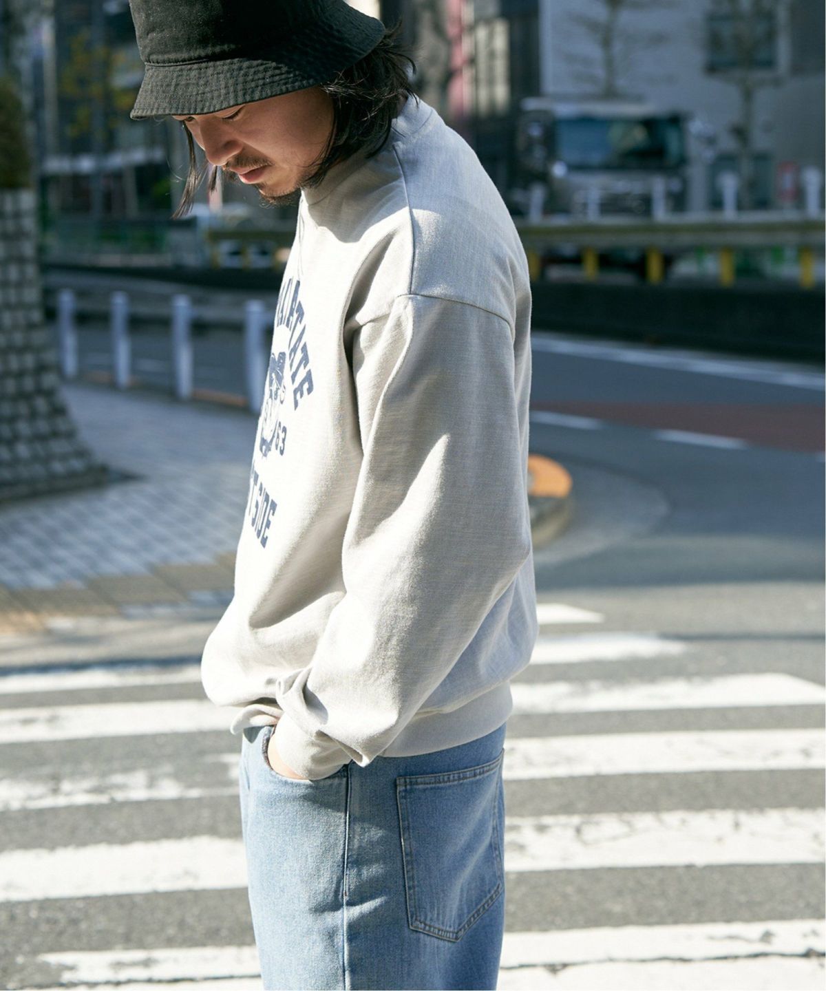 レトロスポーティーな魅力が詰まった一着 スラブロゴプリントトレーナー