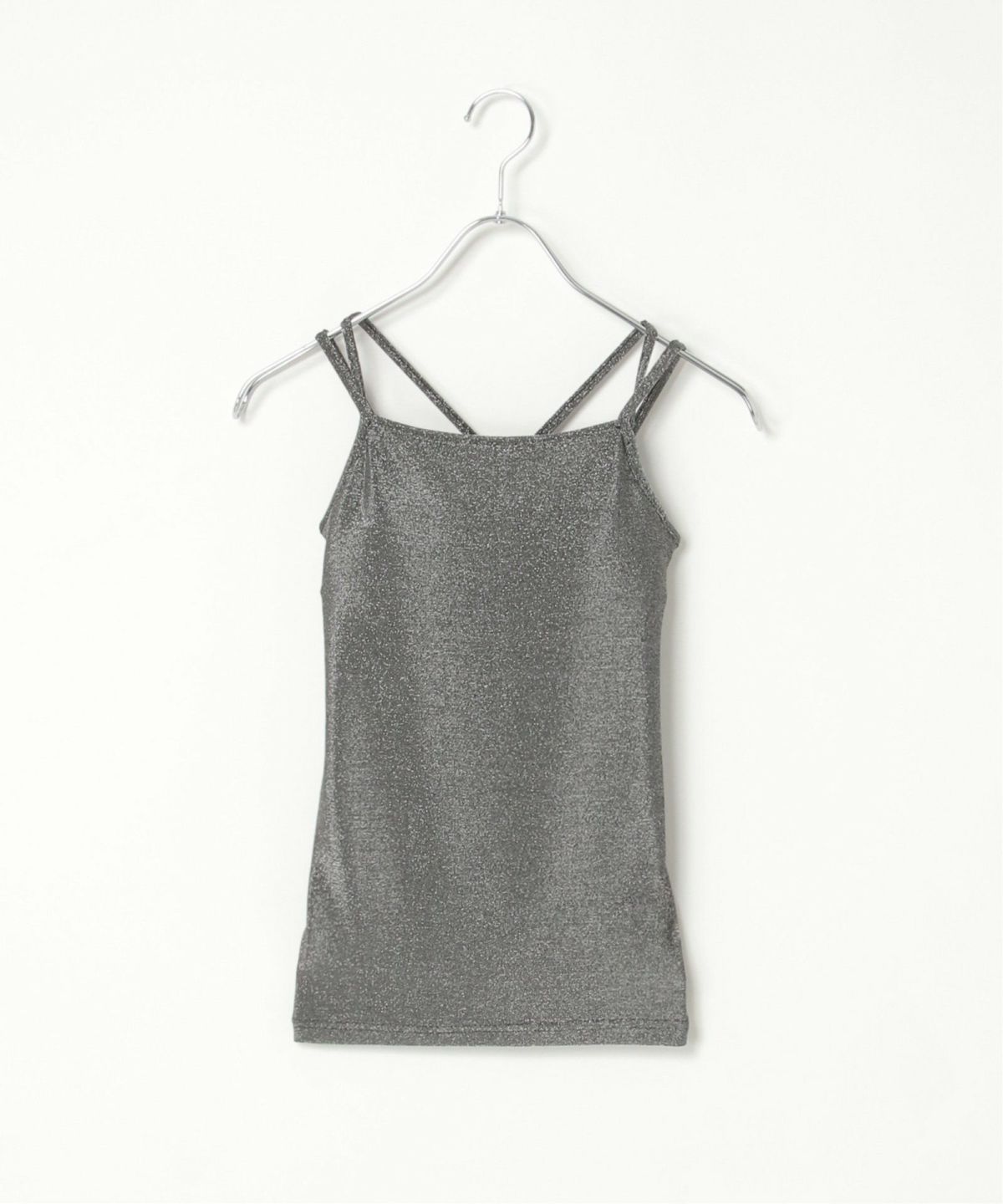 インナーを気にせず着用できるカップ付きキャミ ラメカットソーバッククロスキャミソール
