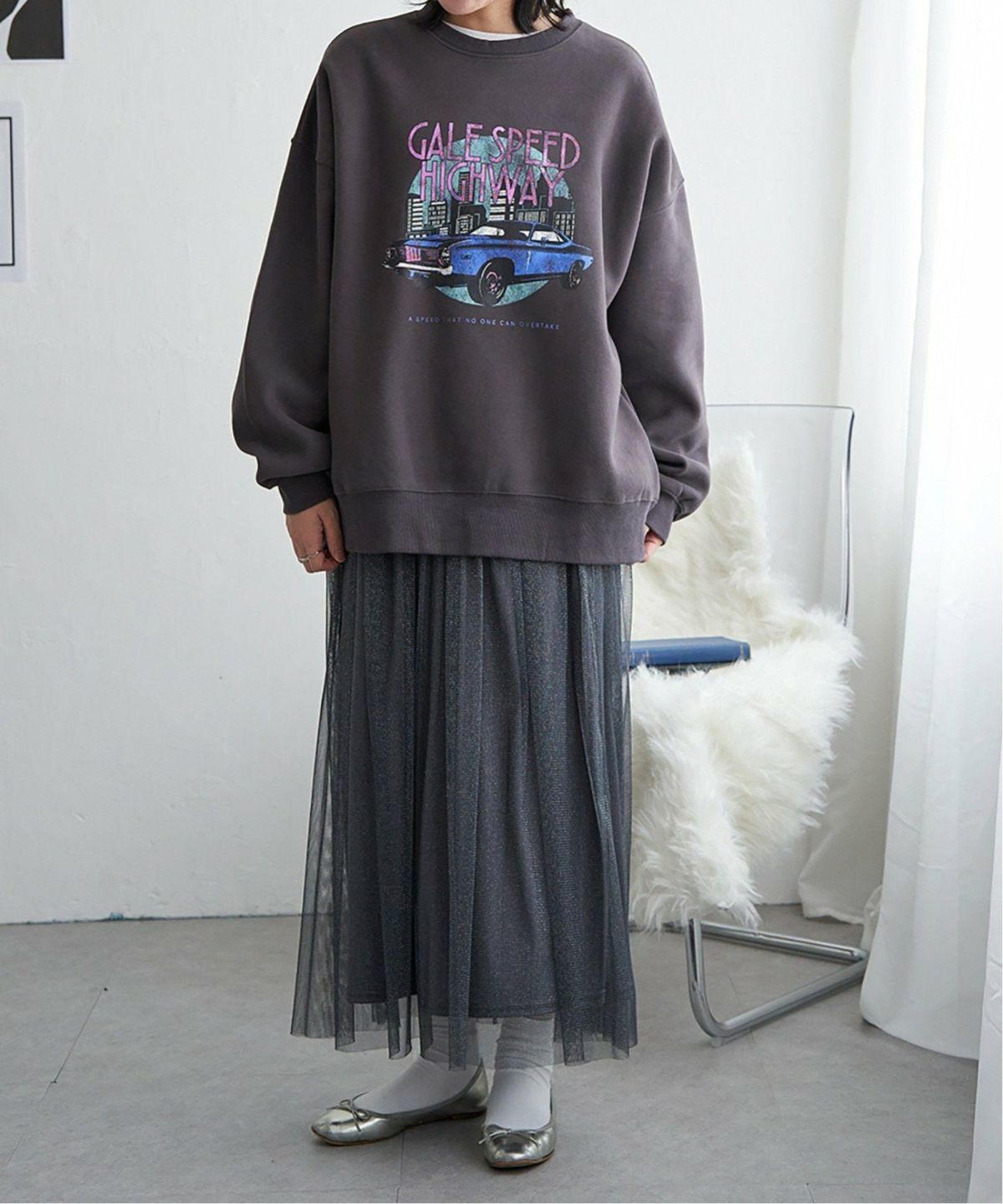 古着のようなレトロ感たっぷりのグラフィック レトロカープリントスウェット