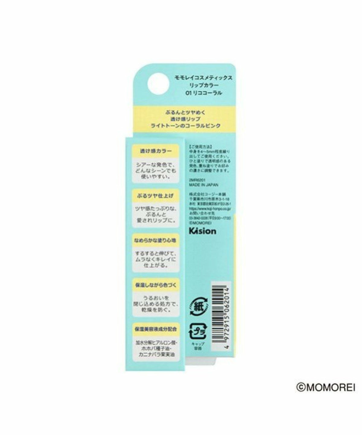 ROU 他の画像を見る ぷるんとツヤめく透け感リップ ライトトーンのコーラルピンク コージー本舗 モモレイコスメティックス リップカラー 01 リココーラル ¥ 1,925 税込 カートに入れる お気に入りに登録する