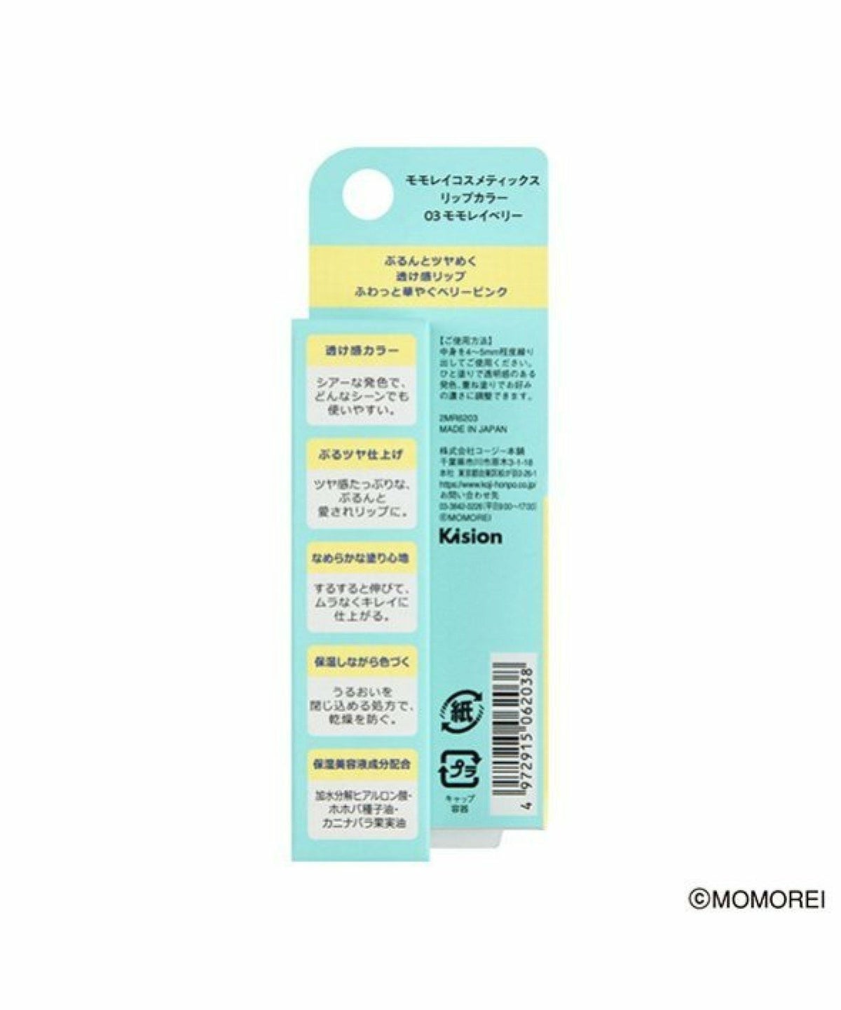 ROU 他の画像を見る ぷるんとツヤめく透け感リップ ふわっと華やぐベリーピンク コージー本舗 モモレイコスメティックス リップカラー 03 モモレイベリー ¥ 1,925 税込 カートに入れる お気に入りに登録する