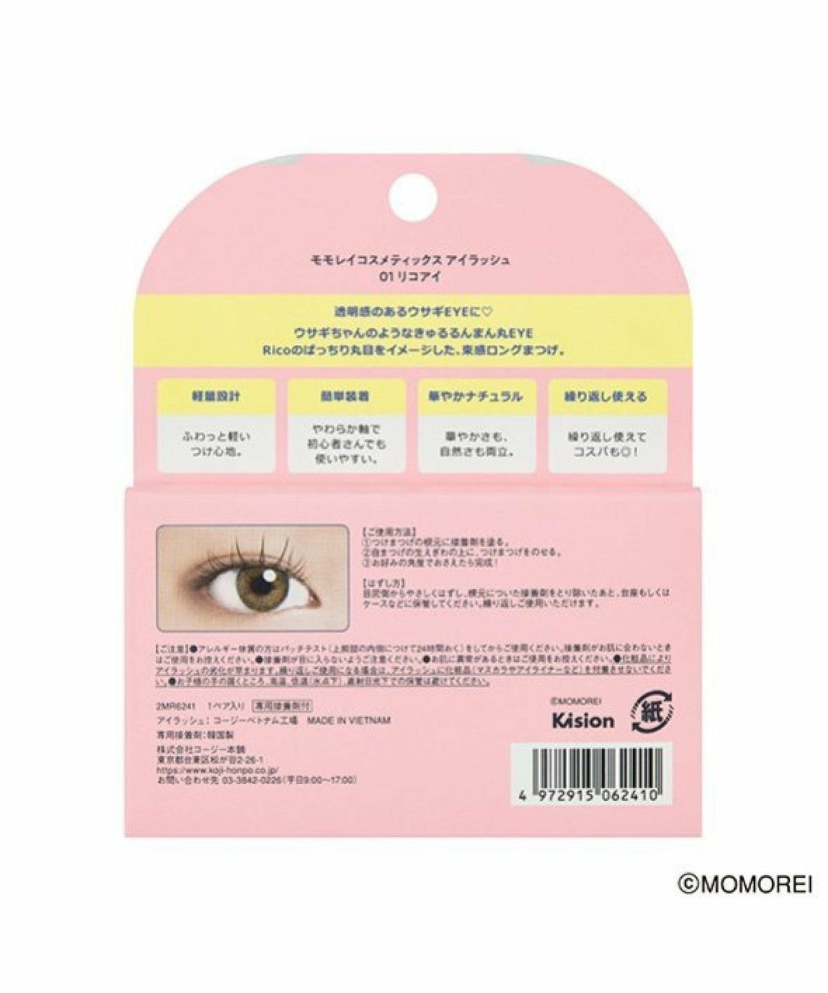 ROU 他の画像を見る きゅるきゅるまつげで毎日がファッションショー コージー本舗 モモレイコスメティックス アイラッシュ 01 リコアイ 1ペア入 ¥ 825 税込 カートに入れる お気に入りに登録する