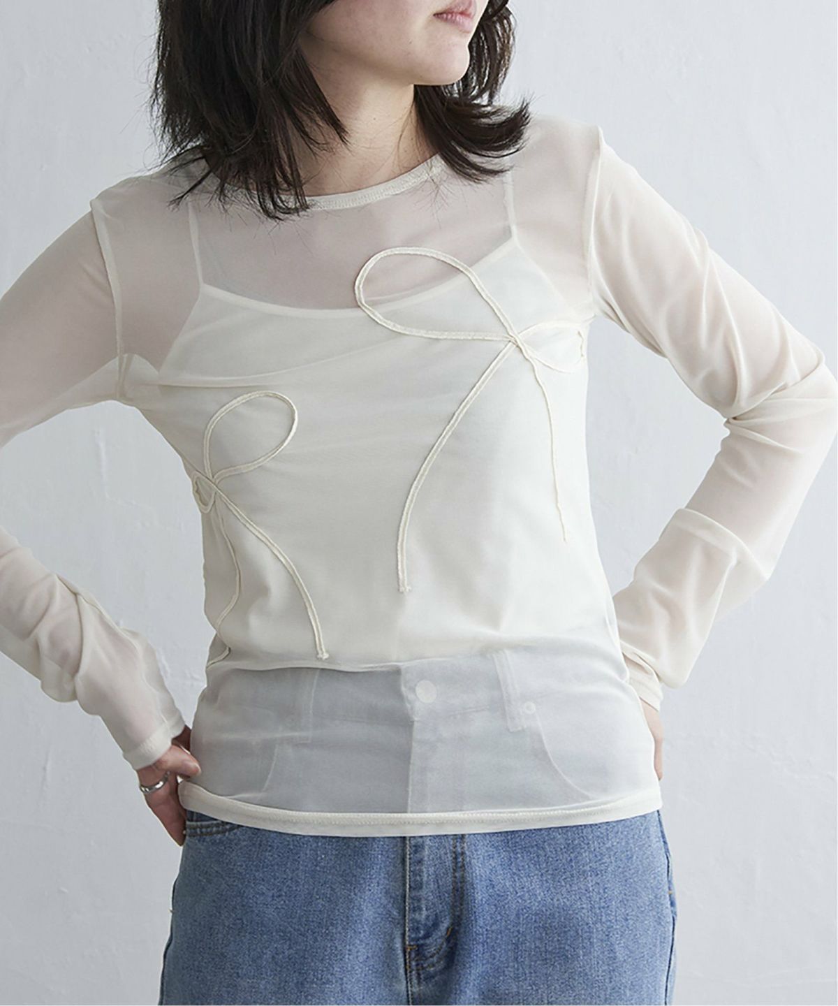 VENCE SALE TIMESALE listIcon2 detailIcon1 春割最大3000off 得春 最大1500off 他の画像を見る 透け感×リボンで魅せる、大人レディなスタイル! シアーリボンコード刺繍プルオーバー ¥ 4,730 → ¥ 4,493 税込 カートに入れる お気に入りに登録する