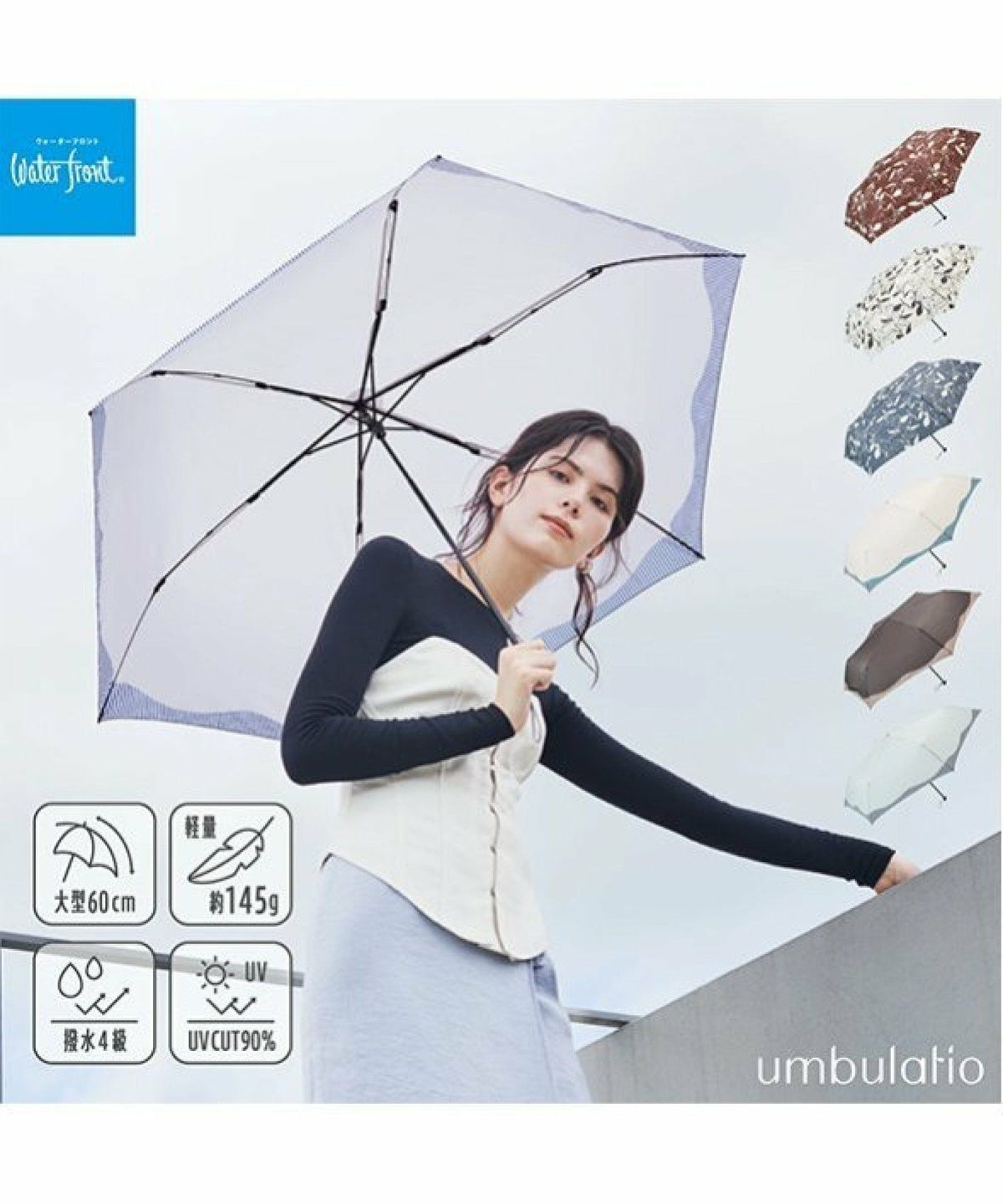 ROU 他の画像を見る 持っていることを忘れてしまうような軽さ umbulatio アンブラティオ ハンディールーフTM ウェービーフレーム 60cm 日傘 雨傘 折りたたみ傘 晴雨兼用 ¥ 3,630 税込 カートに入れる お気に入りに登録する
