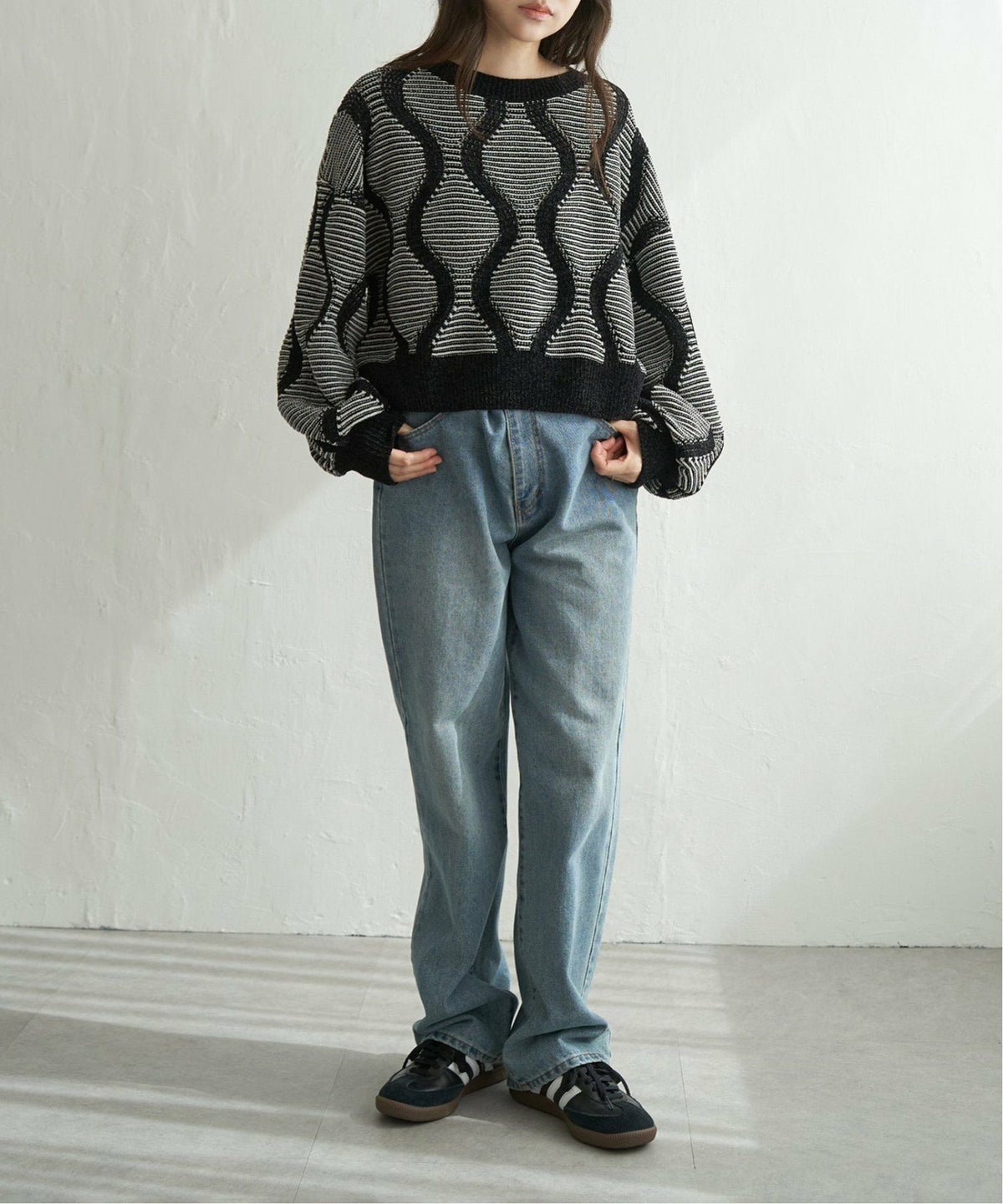 VENCE SALE listIcon2 detailIcon1 桜割最大4000off 他の画像を見る 表情豊かなジャカード!シンプルボトムスと相性◎ 5Gヒョウタン柄ジャガードプルオーバー ¥ 4,950 → ¥ 3,099 税込 カートに入れる お気に入りに登録する