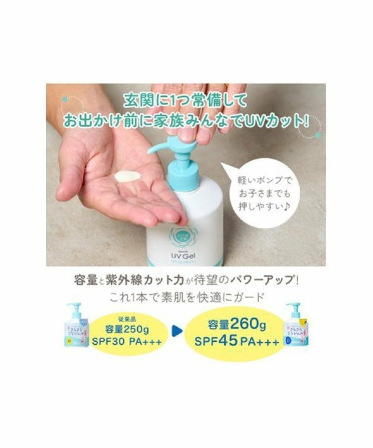 ROU 他の画像を見る 塗ってすぐ服が着られるほどさらさらなUVジェル 紫外線予報 さらさらUVジェル F SPF45 PA+++ 260g【石澤研究所】 ¥ 1,980 税込 カートに入れる お気に入りに登録する