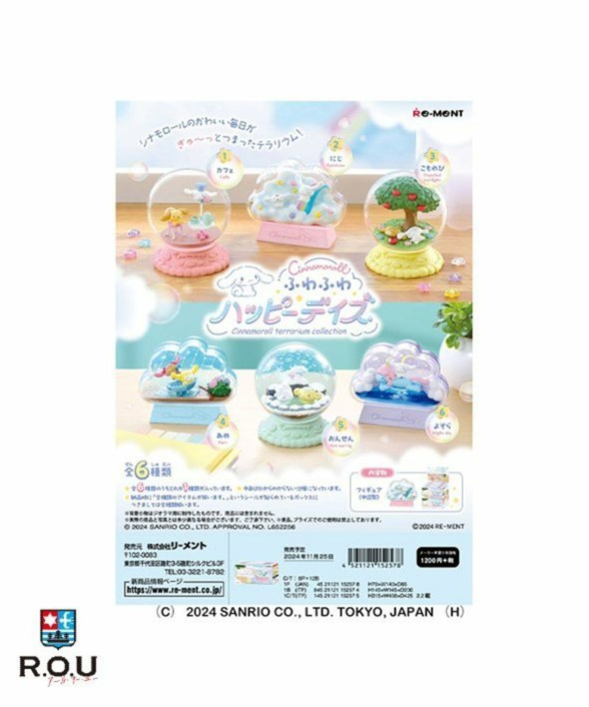 ROU 他の画像を見る 在庫切れ シナモロールのかわいい毎日がぎゅっとつまったテラリウム ! リーメント シナモロール テラリウムコレクション ふわふわハッピーデイズ BOX ¥ 7,920 税込 カートに入れる お気に入りに登録する