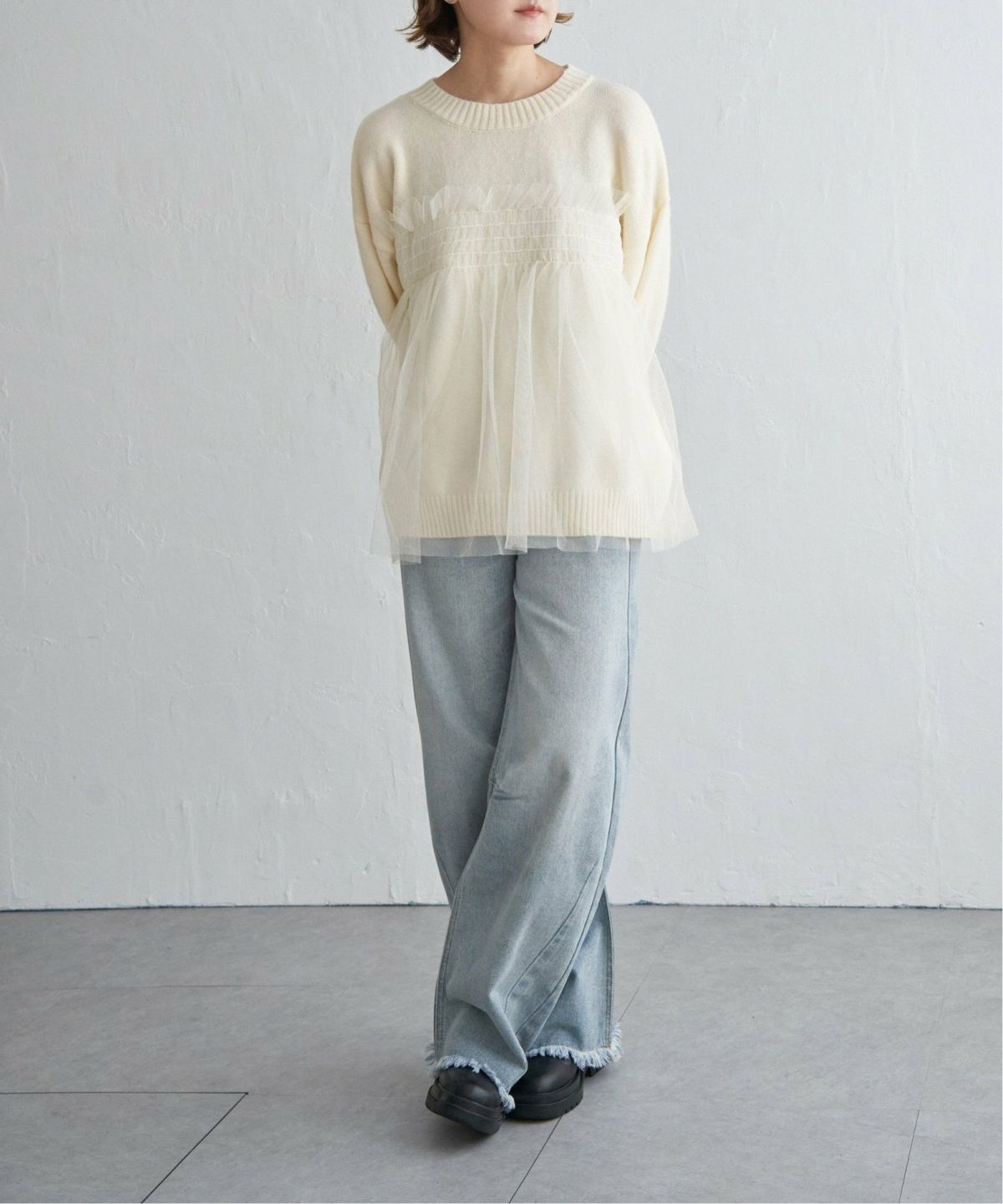 notch. SALE listIcon2 detailIcon1 モアオフ最大3000off 他の画像を見る いつものニットにフリルをドッキング! チュールフリルドッキングニット ¥ 6,589 → ¥ 3,564 税込 カートに入れる お気に入りに登録する