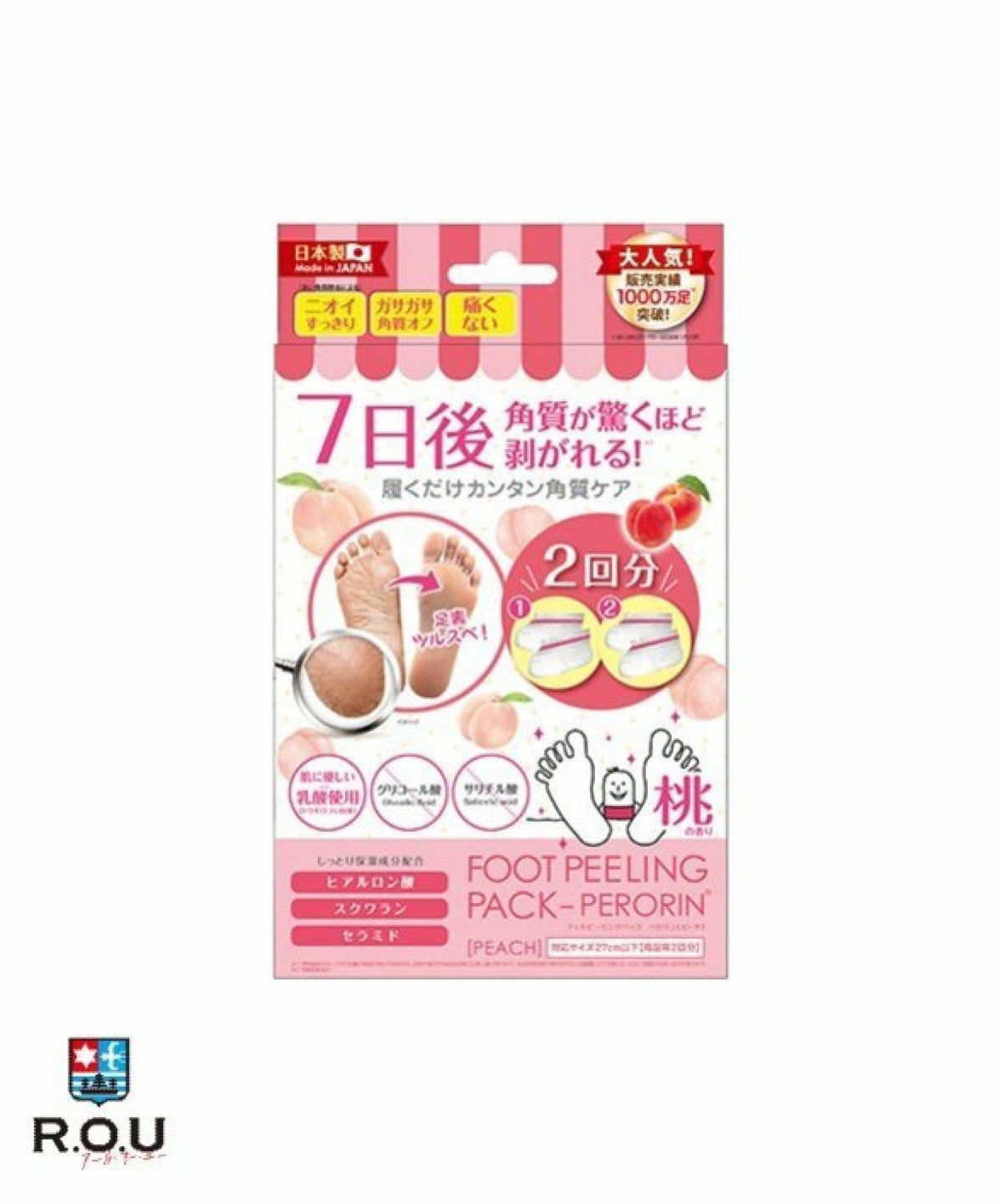 ROU 他の画像を見る 履いて流すだけの簡単ケア ! 足裏の古い角質が驚くほど剥ける ! PERORIN ペロリン フットピーリングパック ペロリン ピーチ 2回分 ¥ 1,540 税込 カートに入れる お気に入りに登録する