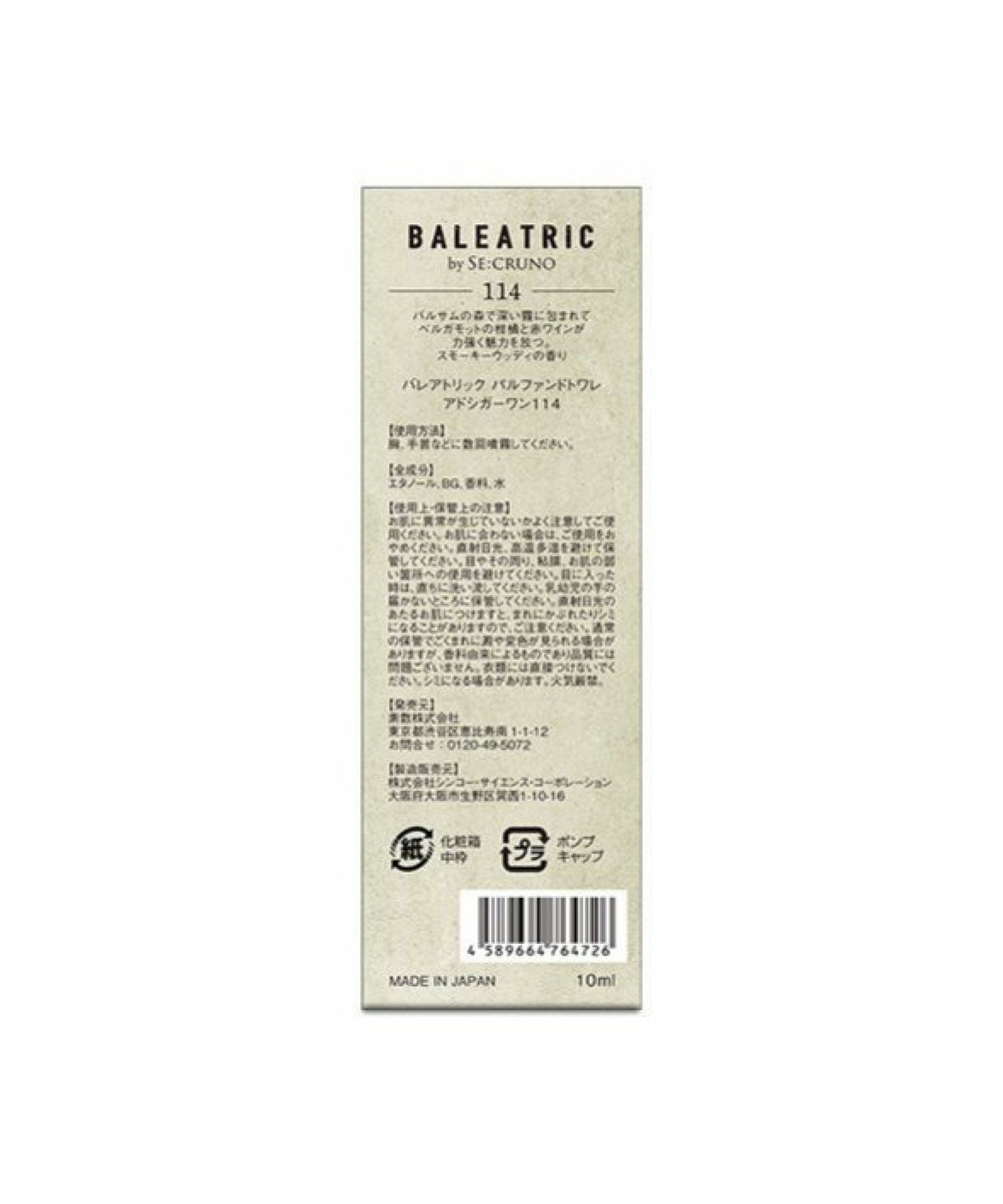 ROU 他の画像を見る クセのない香りが、心の開放と豊かな時間を演出します。 BALEATRIC by SE:CRUNO バレアトリック バイ シークルーノ パルファンドトワレ アドシガーワン114 10mL ¥ 1,980 税込 カートに入れる お気に入りに登録する