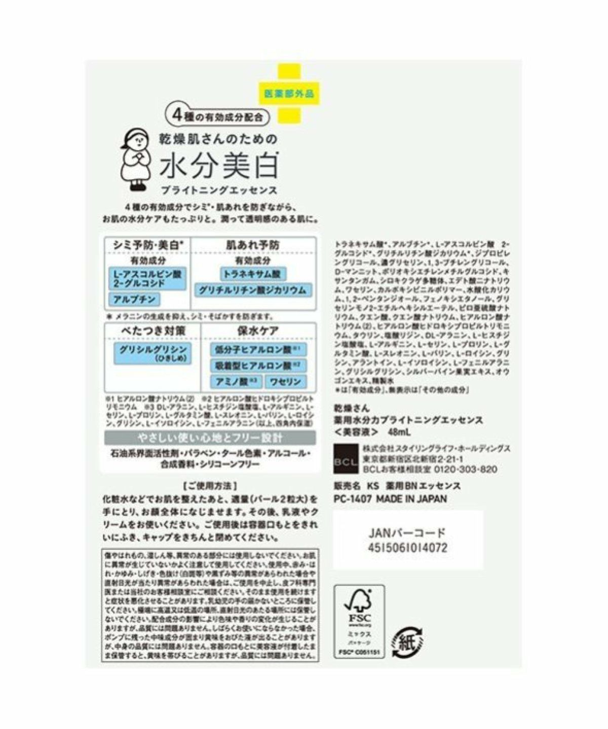 ROU 他の画像を見る 乾燥による肌あれを防いで潤いの透明肌へ ! 乾燥さん KANSOSAN 薬用水分力ブライトニングエッセンス 48mL【医薬部外品】【BCLカンパニー】 ¥ 2,640 税込 カートに入れる お気に入りに登録する