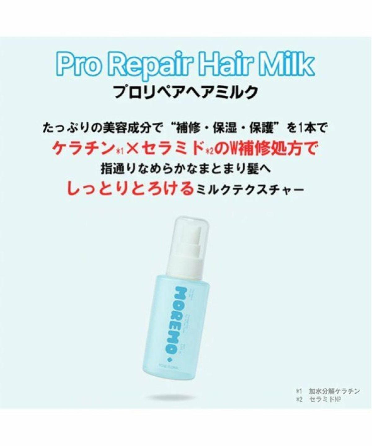 ROU 他の画像を見る ダメージヘアをなめらかに -サラッとした軽い使用感- MOREMO モレモ プロリペア ヘアミルク ローズフローラル 80mL ¥ 1,980 税込 カートに入れる お気に入りに登録する
