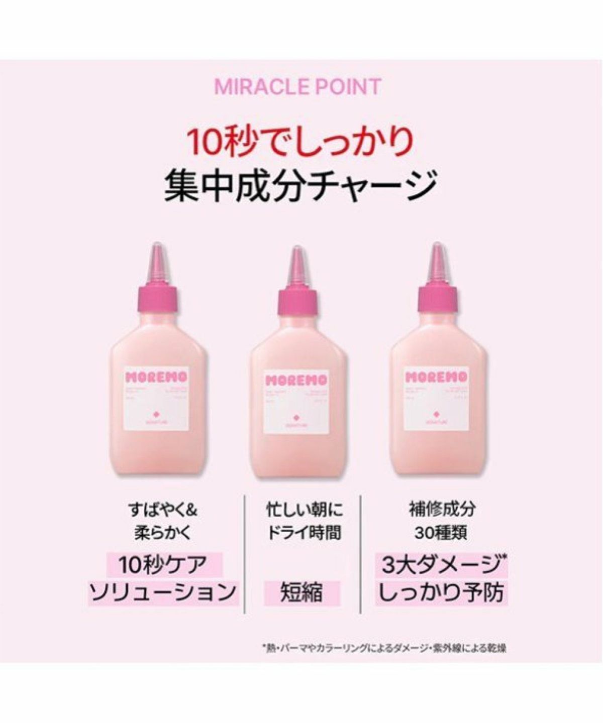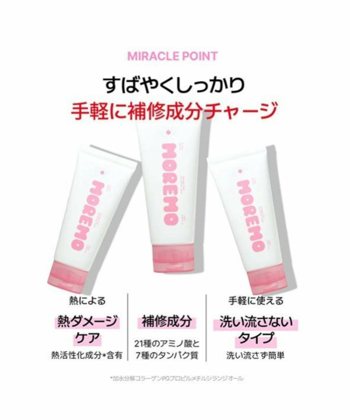 ROU 他の画像を見る サロン帰りの仕上がりを -理想のサラサラ美髪ヘ- MOREMO モレモ ヘアトリートメントミラクル 2X シグネチャー 180mL ¥ 1,980 税込 カートに入れる お気に入りに登録する