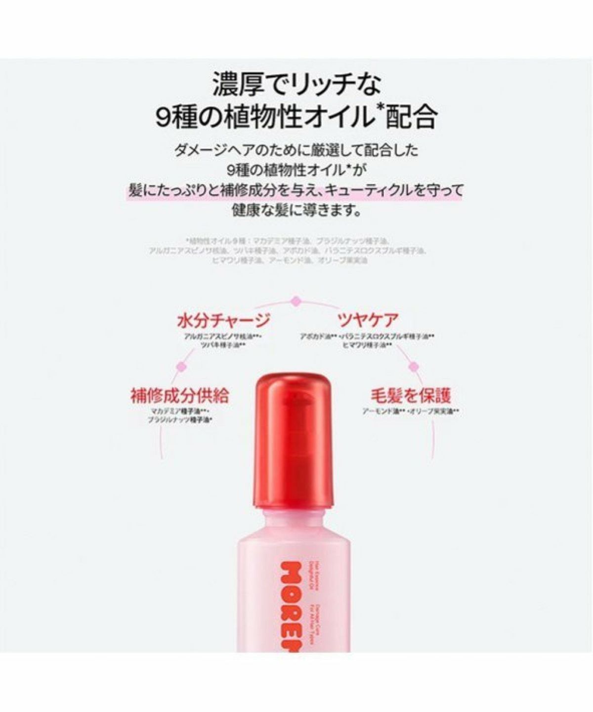 ROU 他の画像を見る ダメージヘアをなめらかにするべたつかないヘアオイル MOREMO モレモ ヘアエッセンスディライトフルオイル 70mL ¥ 1,650 税込 カートに入れる お気に入りに登録する
