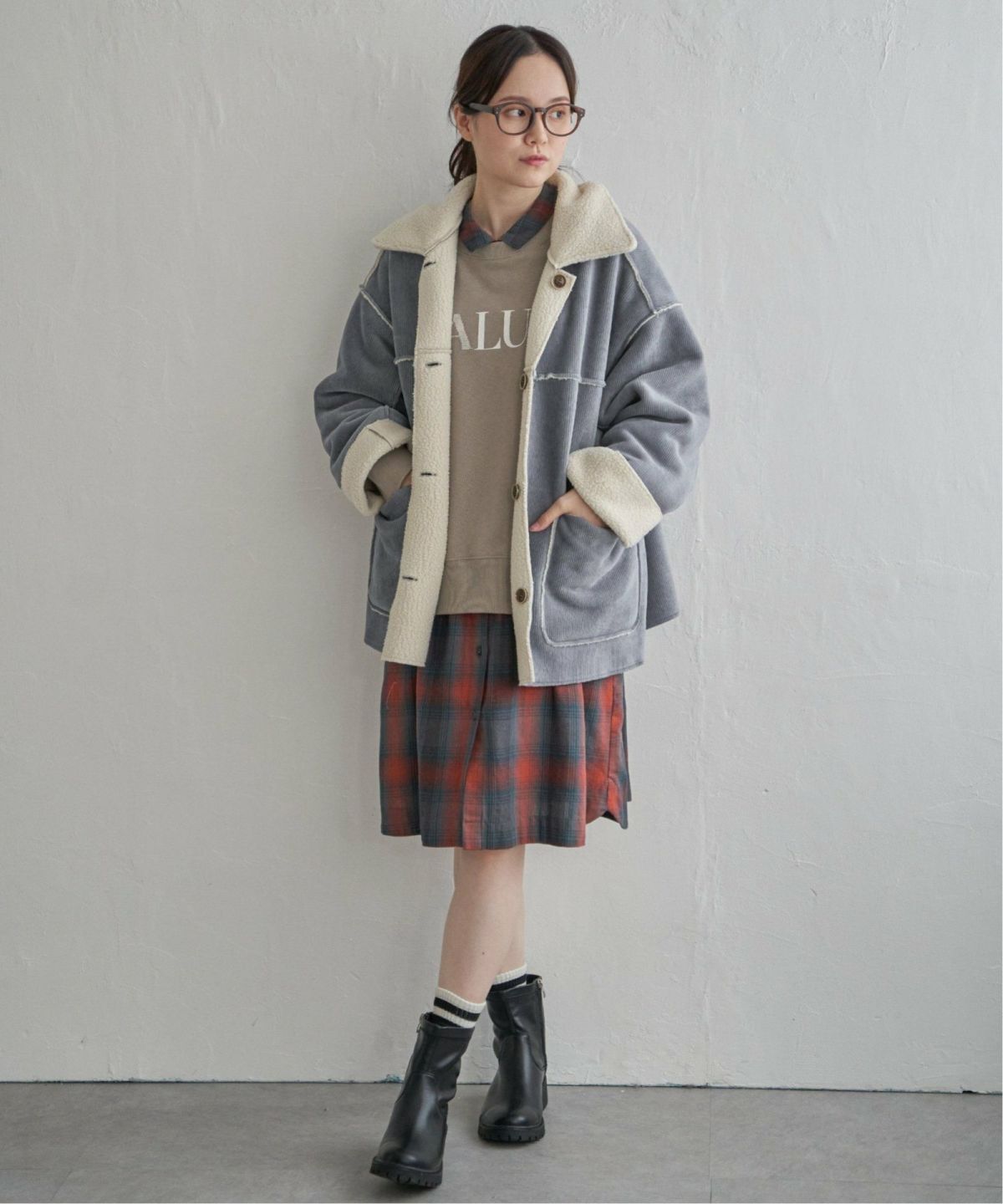 ボアとコーデュロイで楽しむリバーシブルアウター ボアコーデュロイリバーシブル襟付きジャケット