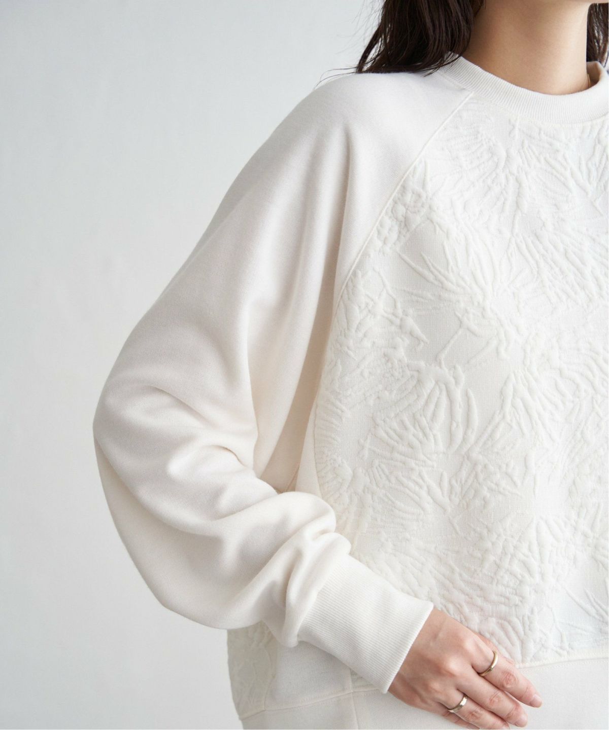透かし編みとサイドスリットで、軽やかな見た目 ミニブークレサイドスリットニット