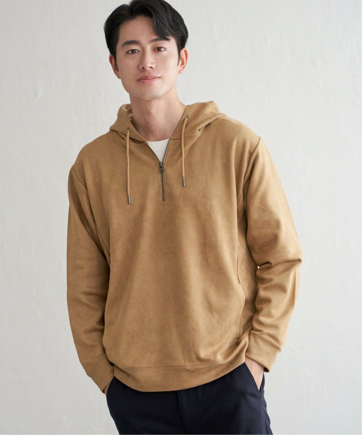 首元のアレンジが楽しめるハーフジップデザイン 【抗菌防臭/吸水速乾】GOKU楽スエードハーフジップパーカ