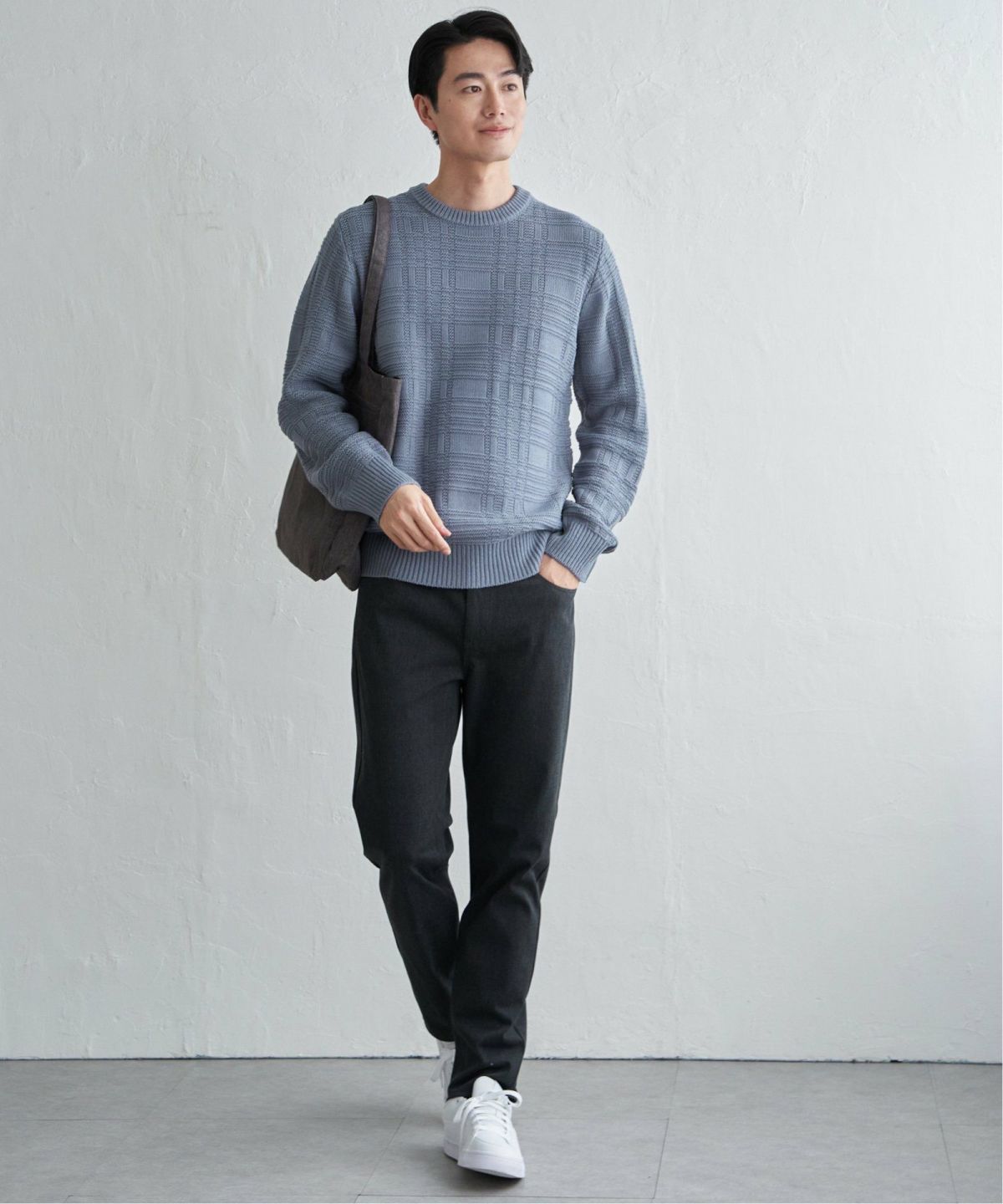 ジャカード編みで表現したチェック柄が魅力! 【洗濯機で洗える】ジャカードチェックニット