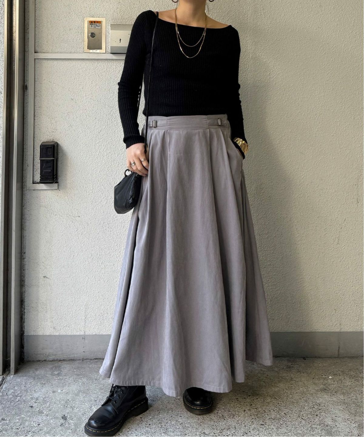 ピーチツイルのぬくもりと立体感のあるタック使い ピーチツイルベルトタックスカート
