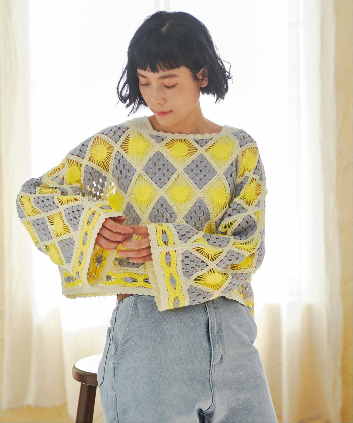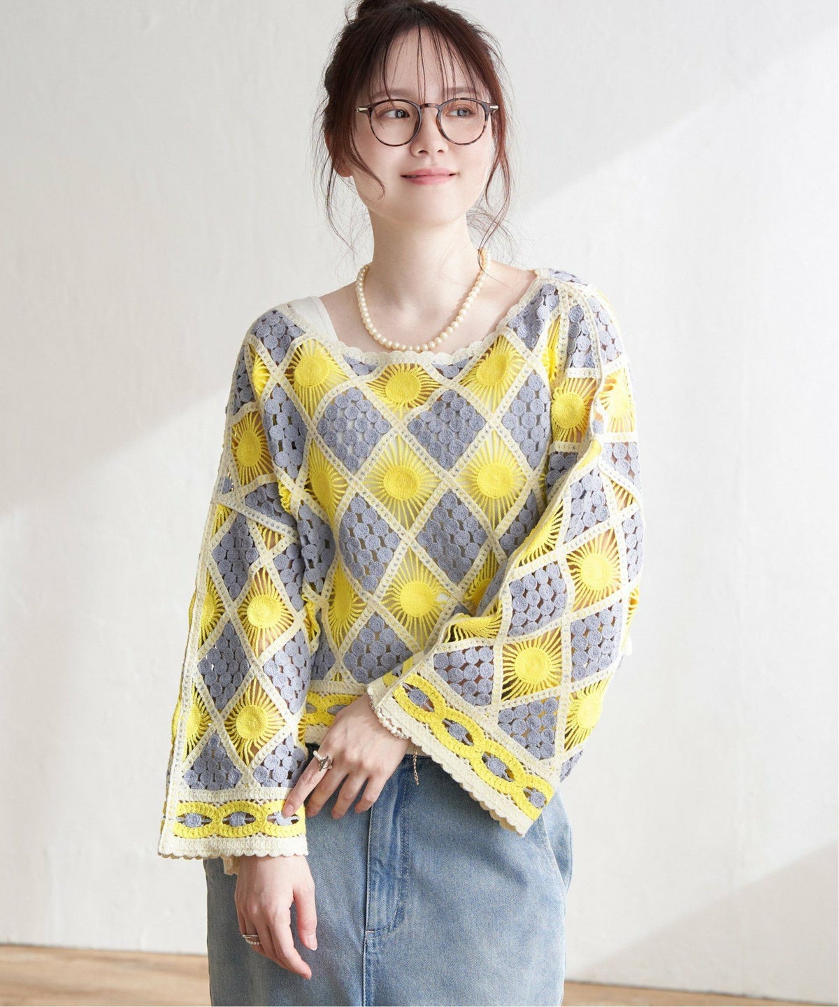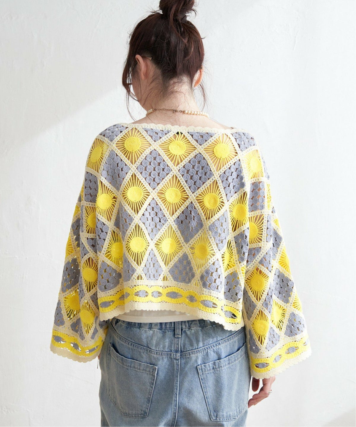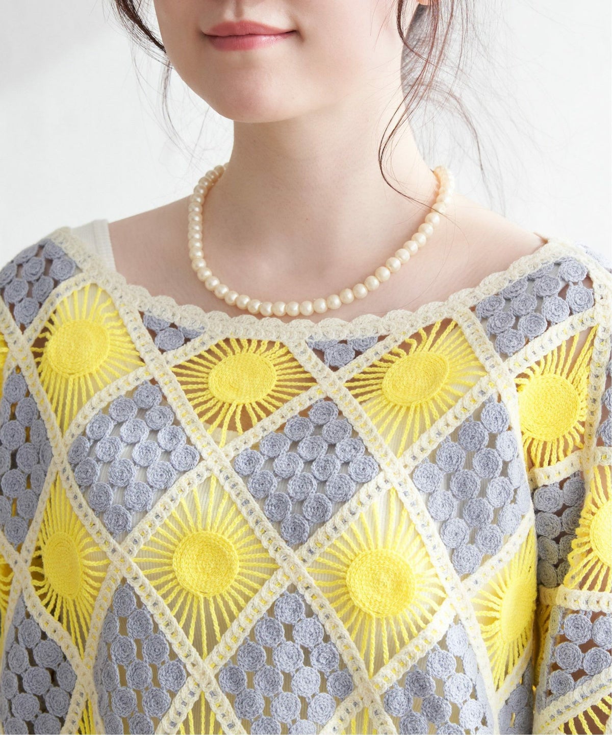 レトロなクロシェ風!レイヤードが楽しめる一枚 モチーフレースショートレースプルオーバー