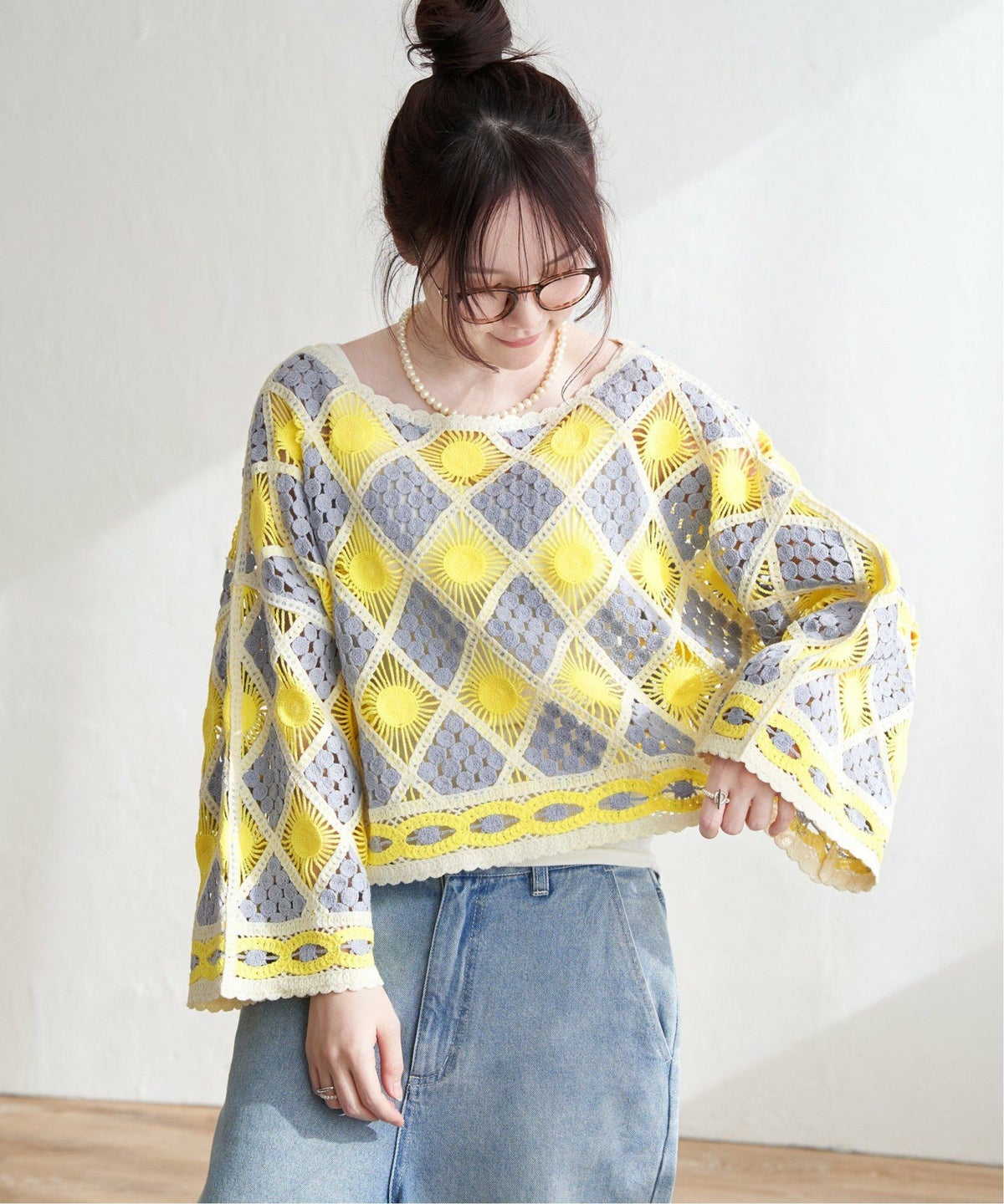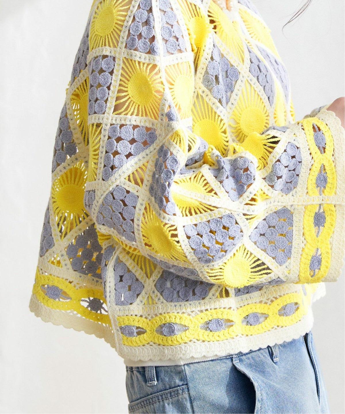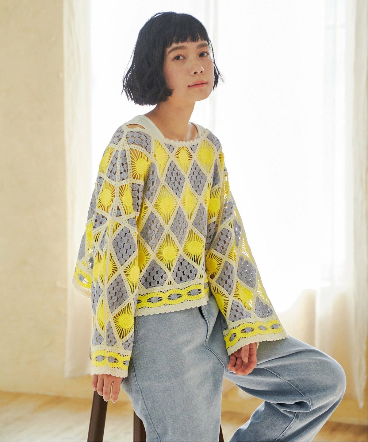 レトロなクロシェ風!レイヤードが楽しめる一枚 モチーフレースショートレースプルオーバー