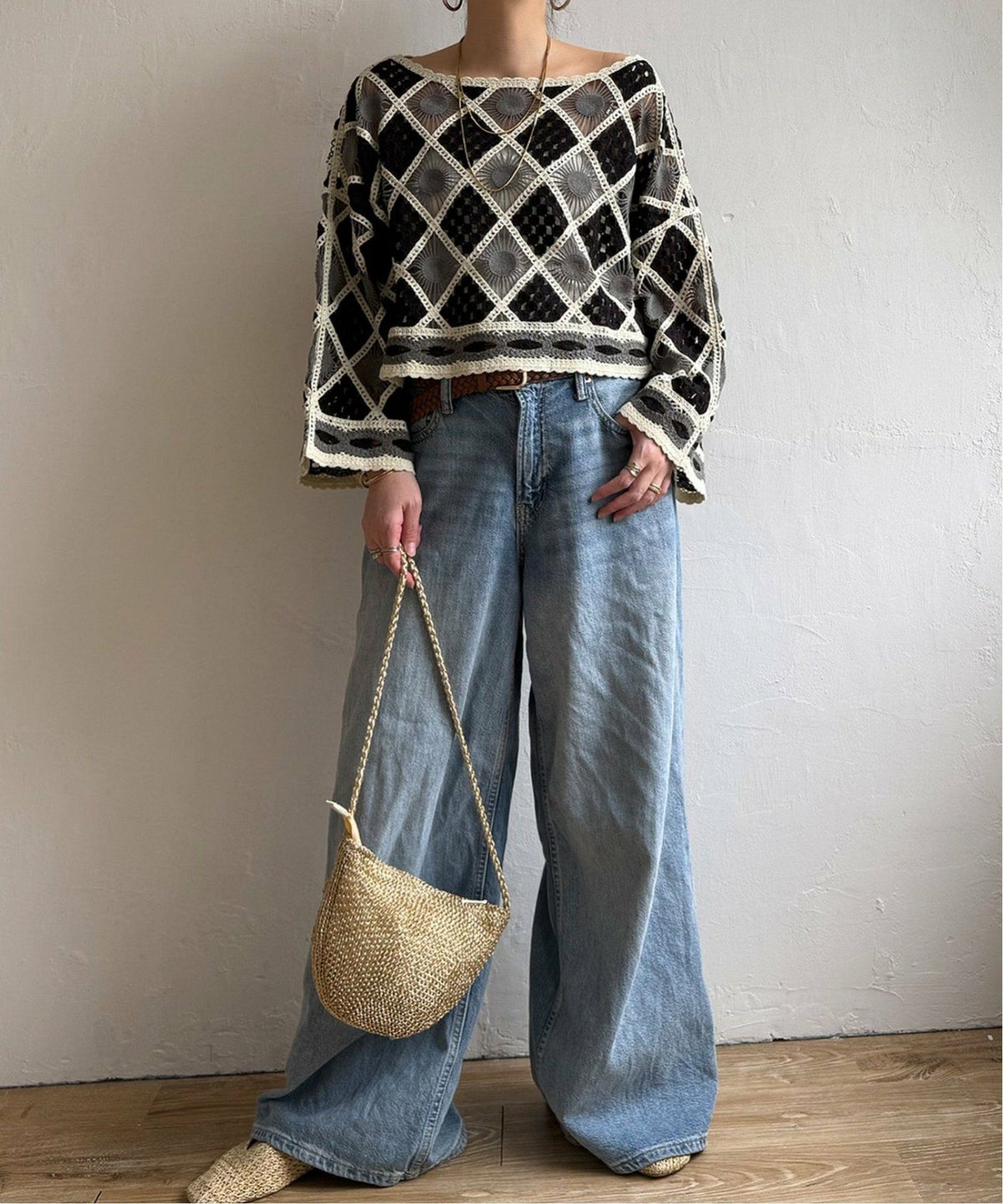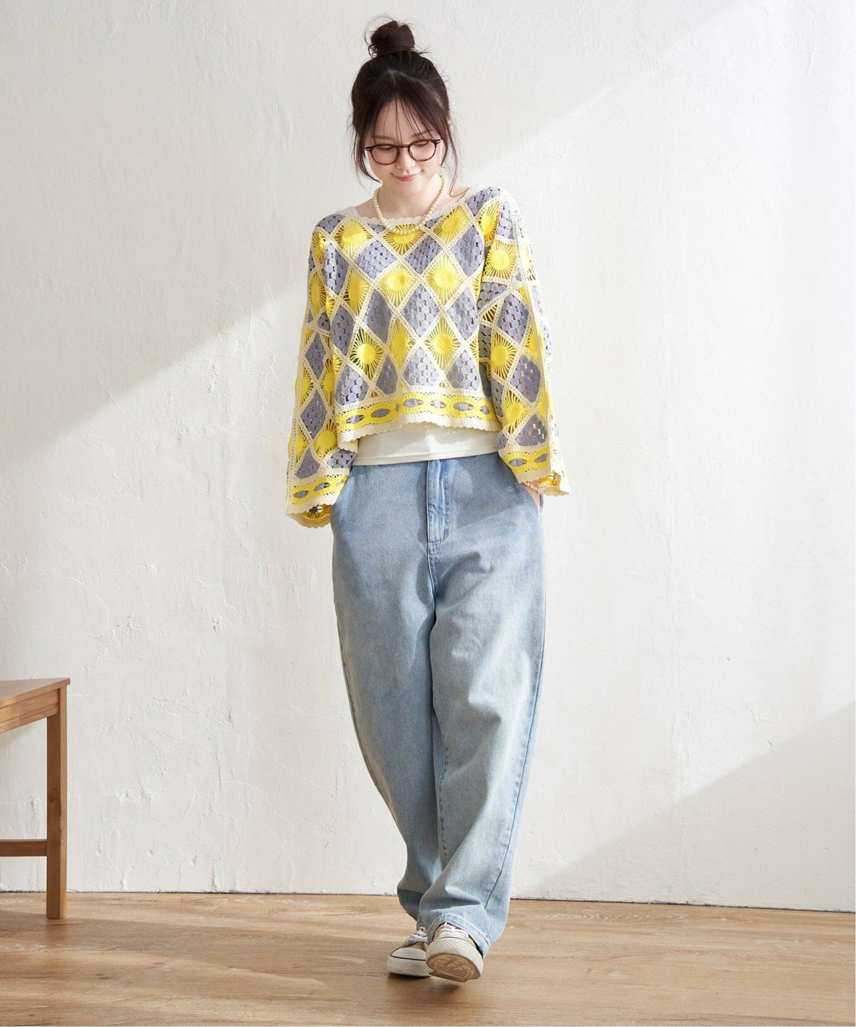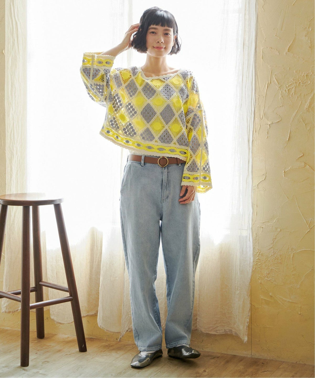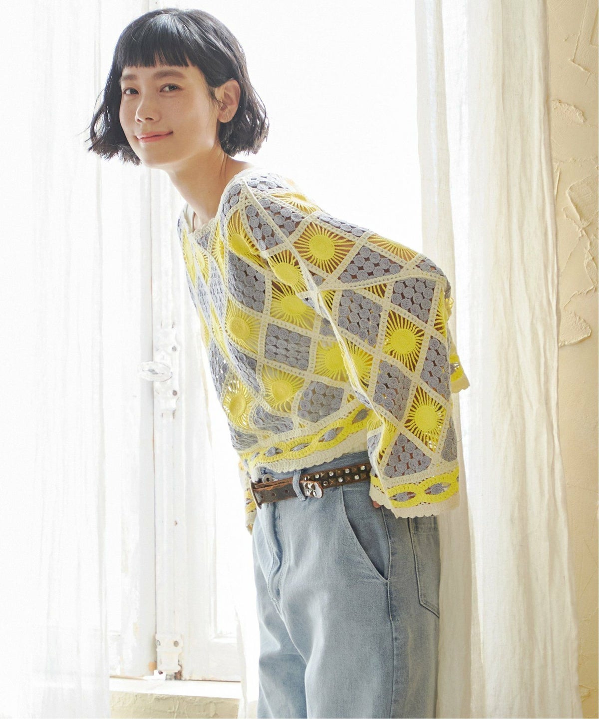 レトロなクロシェ風!レイヤードが楽しめる一枚 モチーフレースショートレースプルオーバー