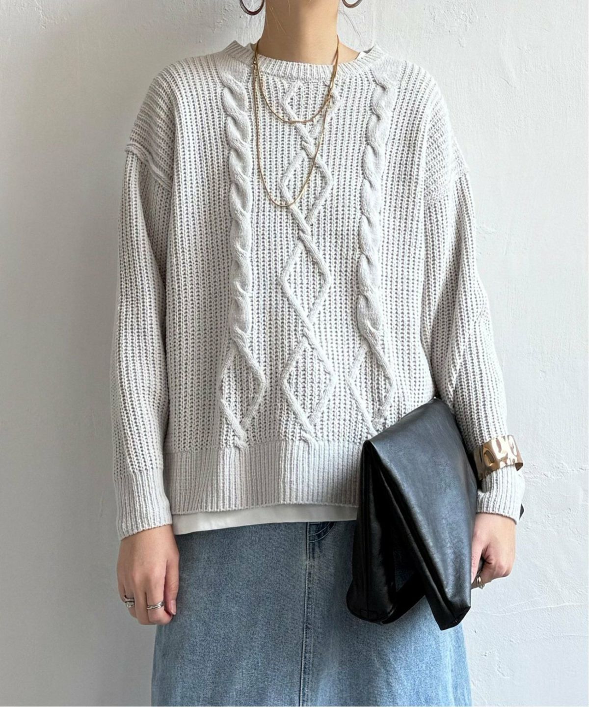 冬コーデを華やかにするモールニット マットモールケーブルニットプルオーバー