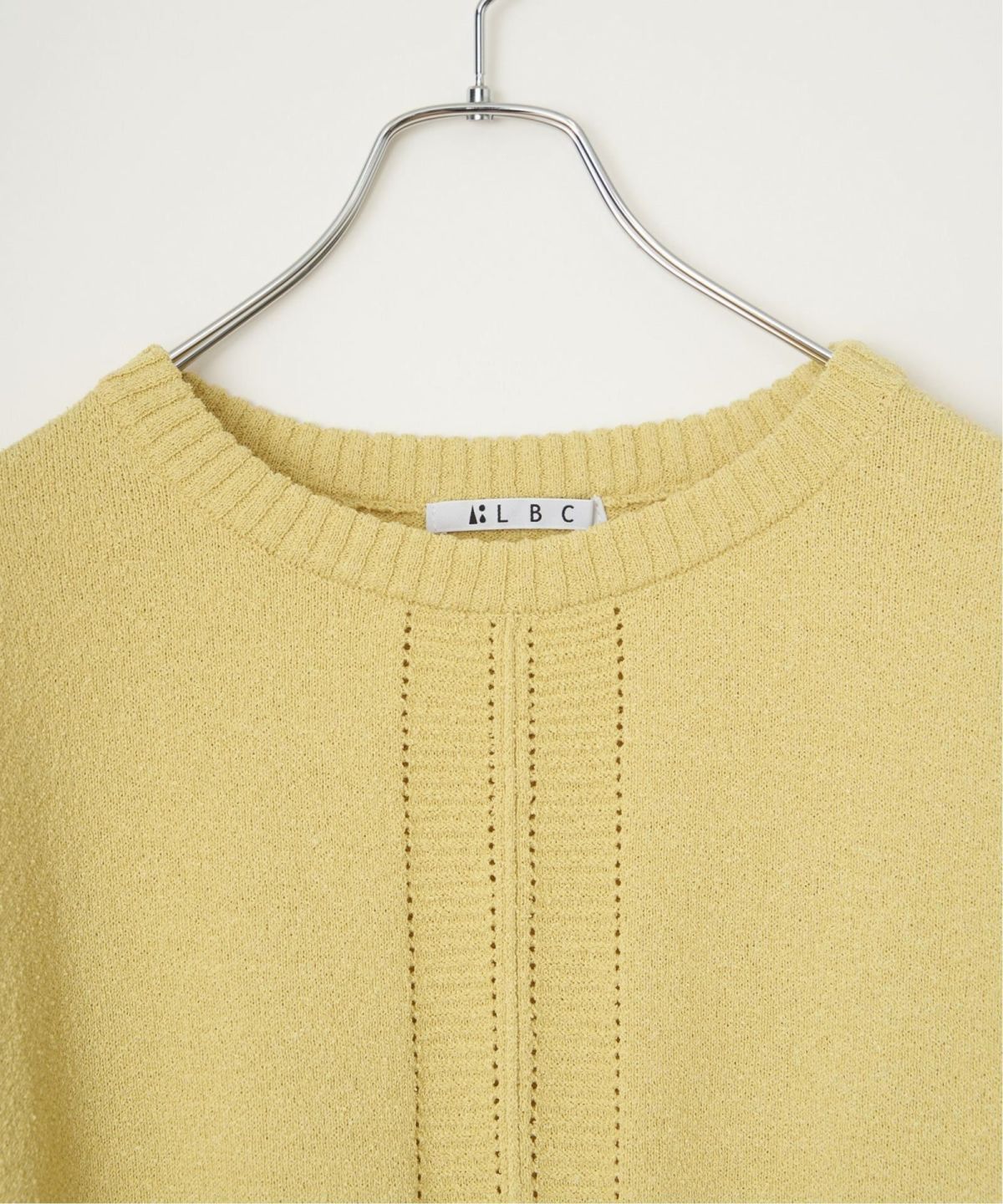 編地変化によるブロッキングのこだわりアイテム ブロックスクルーネックニット