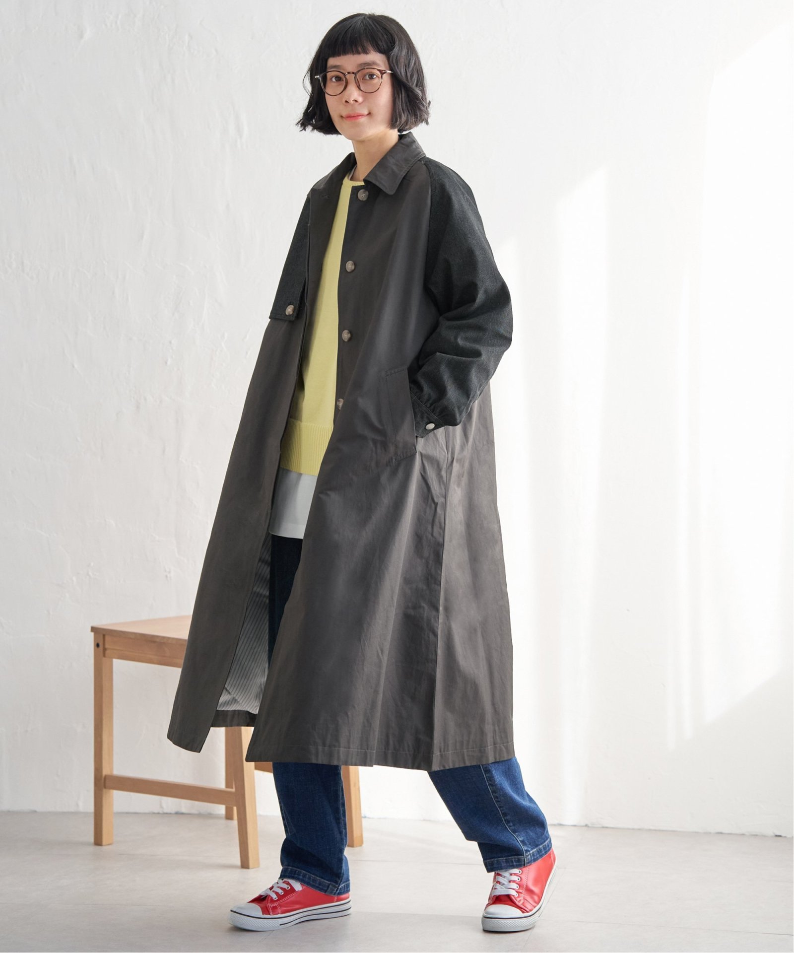 LBC SALE listIcon2 detailIcon1 他の画像を見る クラシックに、遊び心をプラスした個性派アウター デニム切り替えステンカラーコート ¥ 12,089 → ¥ 9,671 税込 カートに入れる お気に入りに登録する