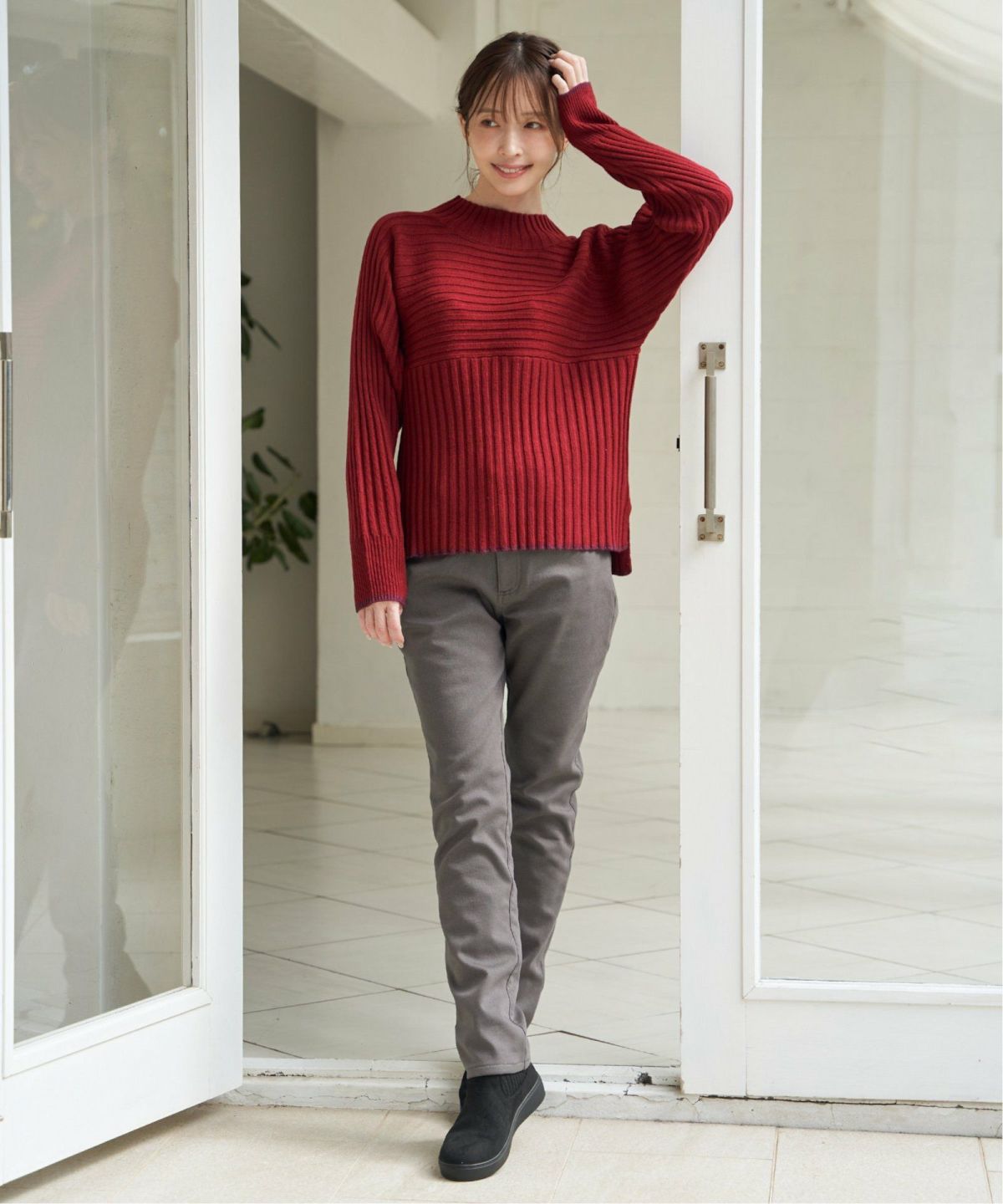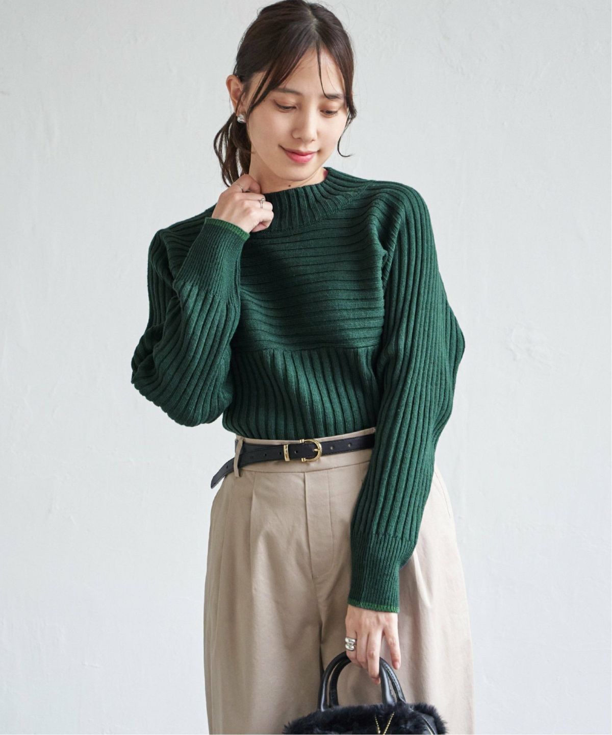 配色スリーブがコーデの主役になる洗練ニット 袖配色ワイドリブニットプルオーバー