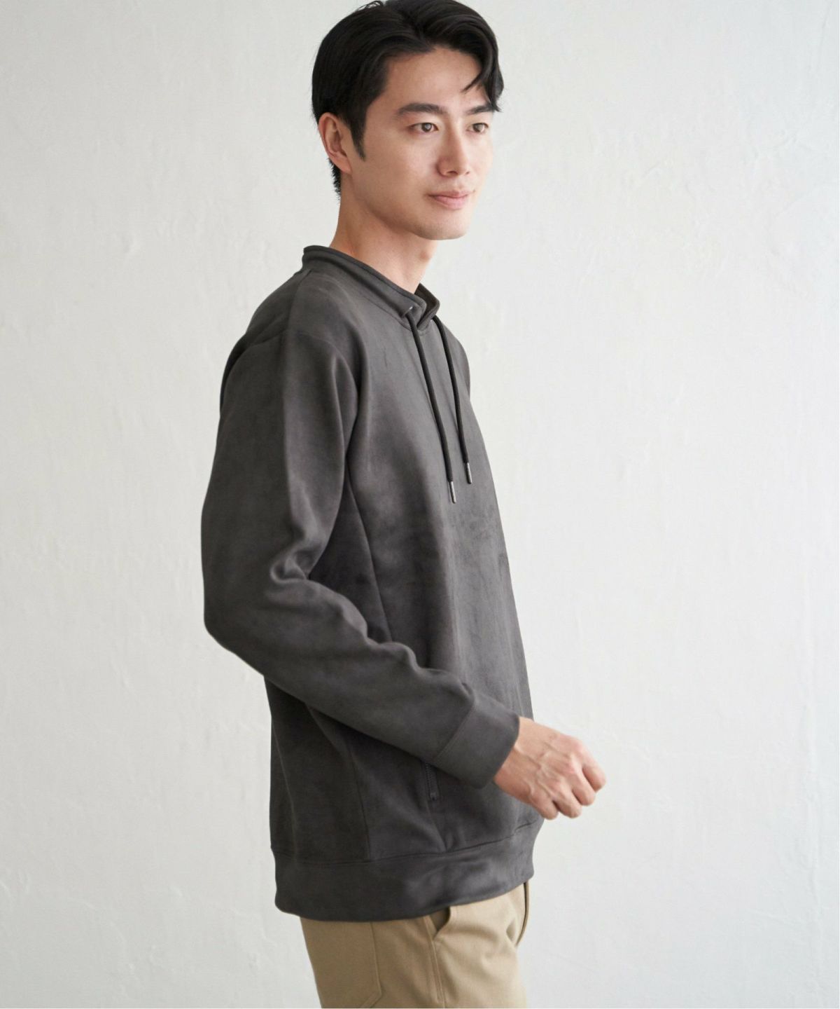 首元のアレンジが楽しめるハーフジップデザイン 【抗菌防臭/吸水速乾】GOKU楽スエードハーフジップパーカ