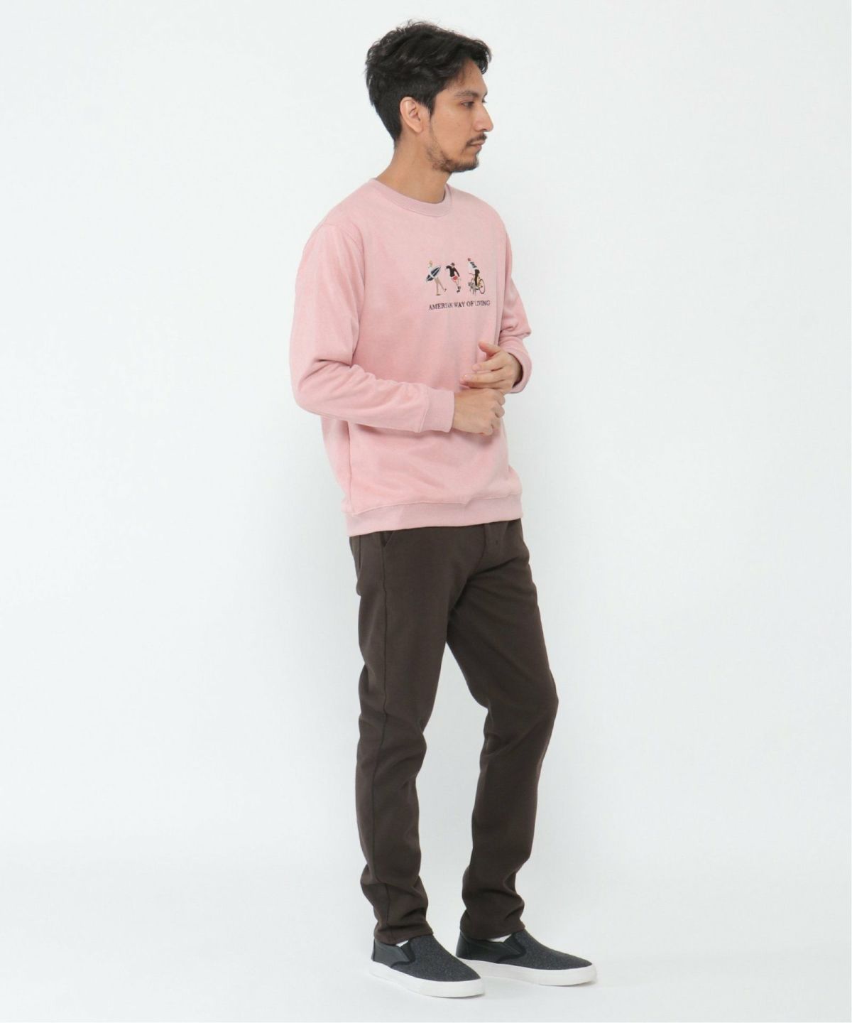 カジュアルシーンにぴったりなトレーナー! フェイクスウェード刺繍プルオーバー